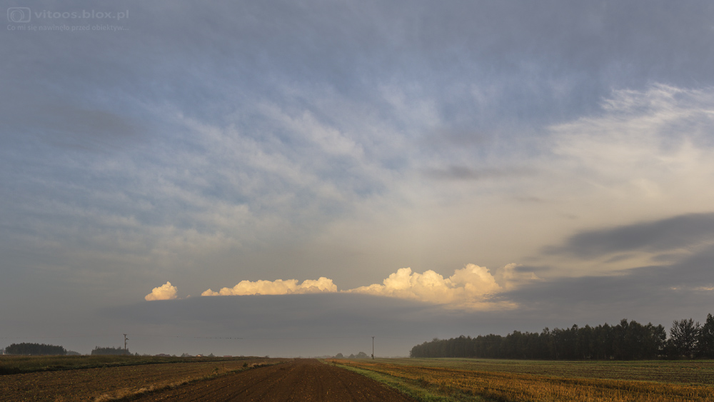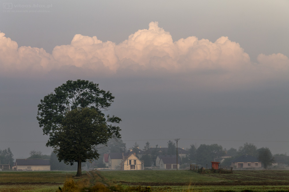Ubiegła niedziela obfitowała u mnie w ciekawe fotografie. Najpierw mglisty świt, który pokazywałem wczoraj, potem chmura szelfowa, a między czasie daleka obserwacja czubka odległej o ok. 50 – 60 km komórki burzowej. Komórka znajdowała się w okolicy Tarnowa, a ja w okolicy Rzeszowa.