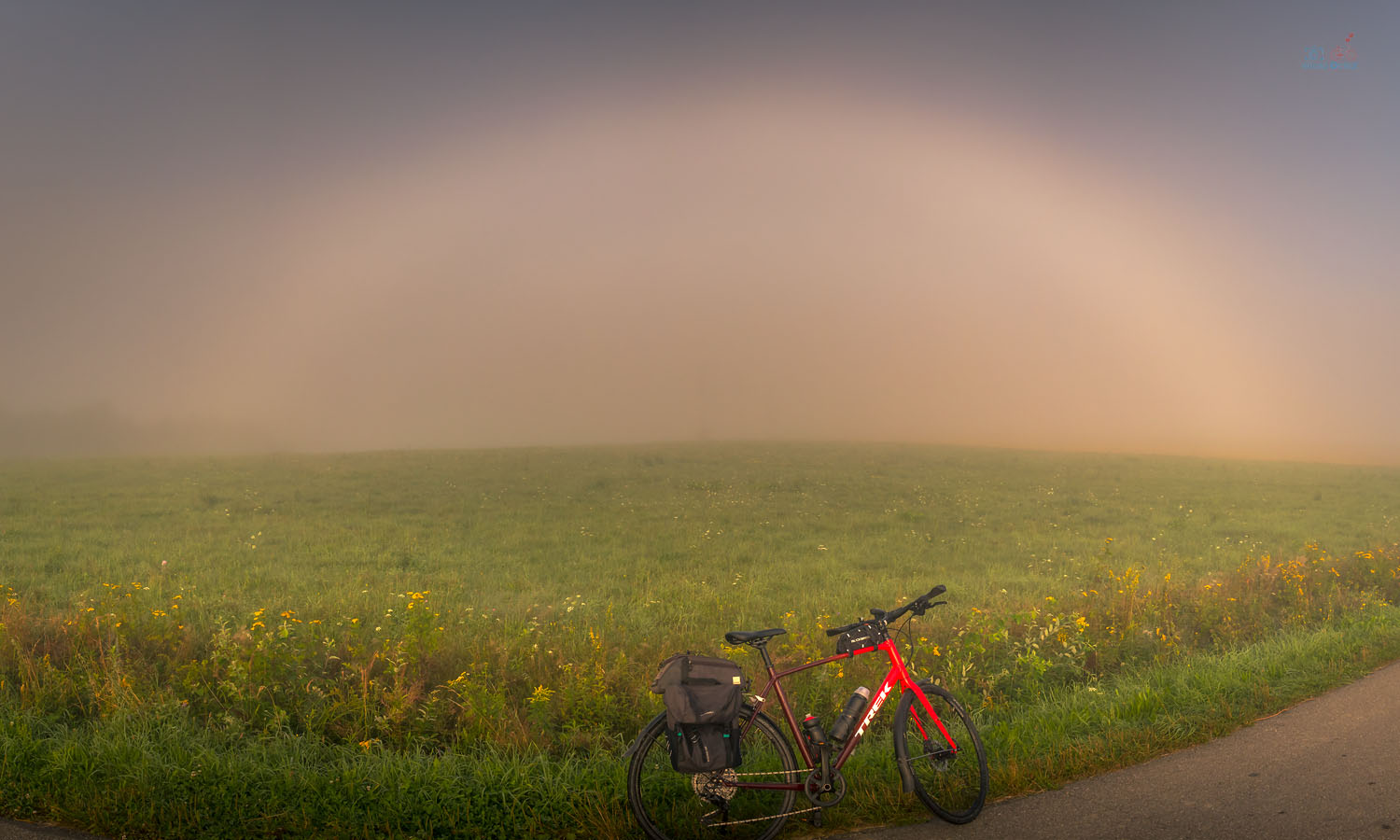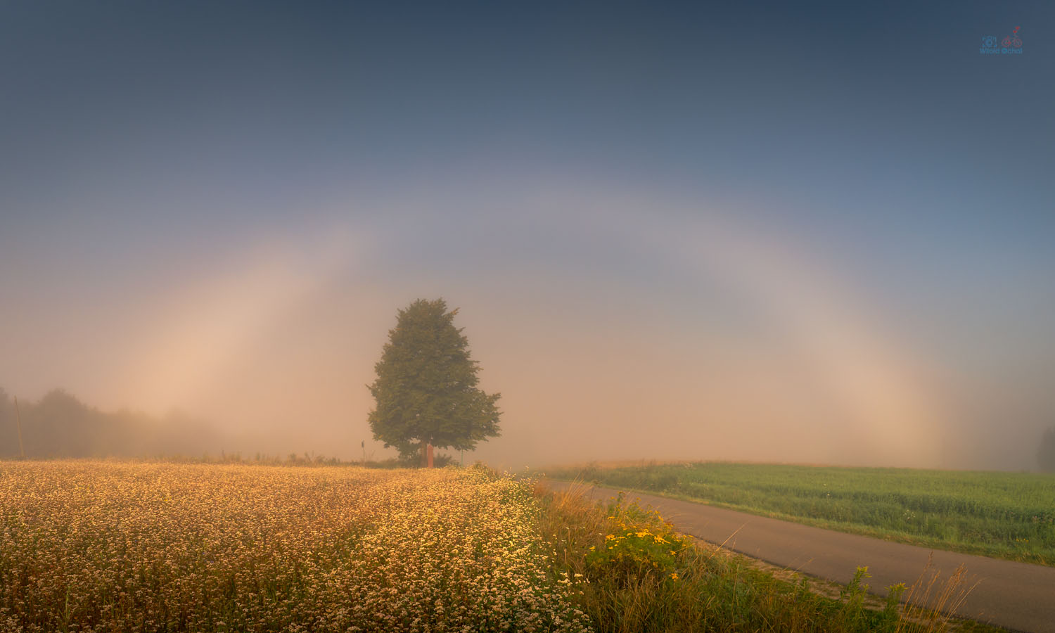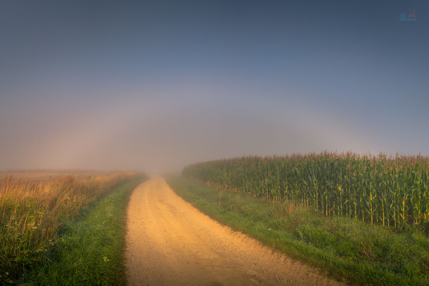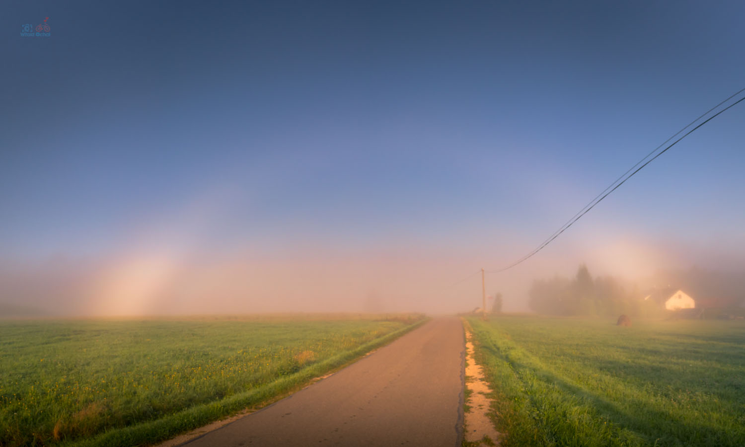 Widok białej tęczy zawsze bardzo mnie cieszy. Tym razem towarzyszyła mi ona przez kilka kilometrów. A potem znów przez kilka. Sobotni poranek zapowiadał się mgłami i tak faktycznie było. Wystartowałem rowerem po piątej i przez pierwsze dwie i pół godziny towarzyszyła mi bardziej lub mniej gęsta mgła. To była kwiestia czasu, kiedy zobaczę białą tęczę.
