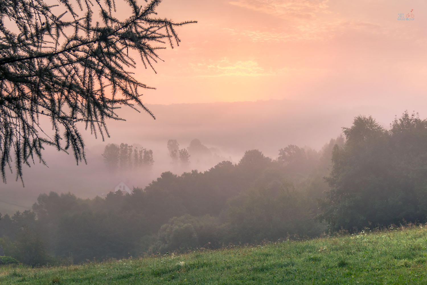 To miejsce ma jakąś przyciągającą mnie moc. Tym razem o poranku, niedługo po wschodzie słońca z rowerzystą w roli głównej. W pierwszej chwili myślałem, że to grzybiarz z koszykiem na bagażniku, ale chyba jednak nie. Podejrzliwie się za mną oglądał, pewnie zastanawiał się kto jeszcze o tak wczesnej porze nie spi i włóczy się na rowerze 😉