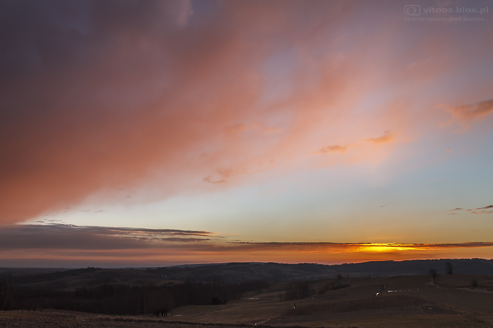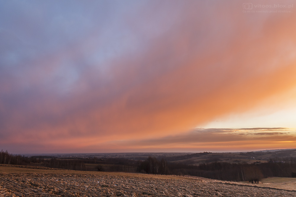 W poprzedni weekend będąc w Krakowie postanowiłem pooglądać miasto o świcie. W tym celu udałem się na kopiec Piłsudskiego, ale kiedy tylko na niego wyszedłem, wiedziałem, że nie będzie z tego nic innego niż klops. Całe miasto spowite było w smogu. Na szczęście malowniczy wschód odrobinę wynagrodził mi zarwaną noc.