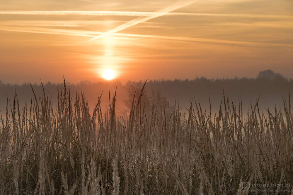 Kolejna porcja zdjęć z ubiegło tygodniowej środy. Jeszcze fajniej się zrobiło, kiedy znalazłem się za małym zagajnikiem, a słońce próbowało się przebić i przez mgłę i przez ten zagajnik.