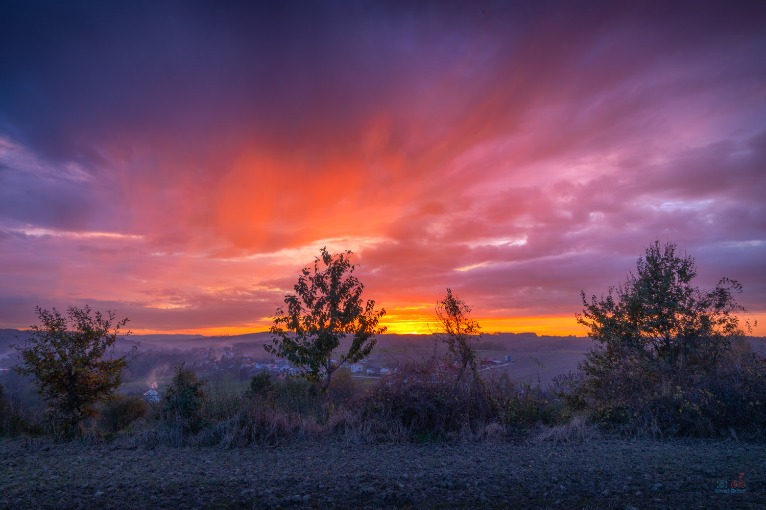 Jest już sporo po zachodzie słońca. Na niebie resztki kolorów. Na ziemi rozlewiska po roztopach i opadach. Te były już jakiś czas temu, ale tyle wody nie da rady wsiąknąć w ziemię. Mocny wiatr nie ułatwia zadania. Statyw nie może ustać, a co dopiero nie drgnąć, aby zrobić zdjęcie.