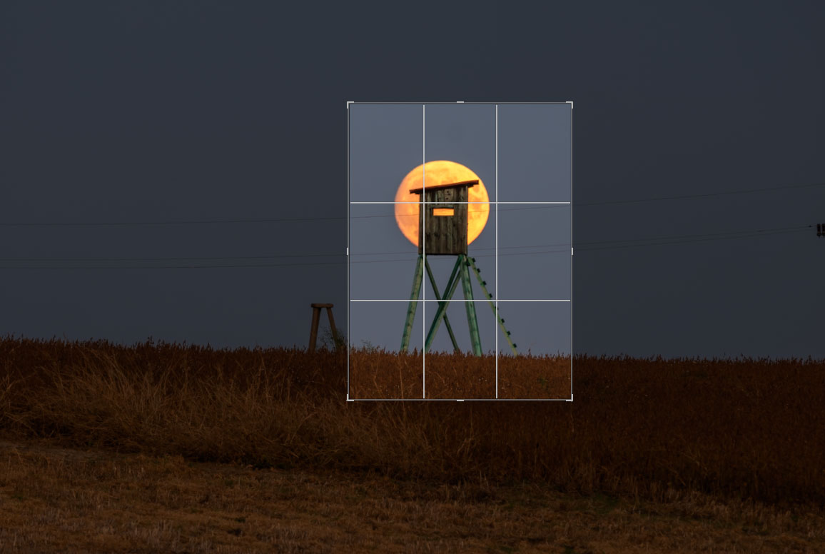 W tej odległości od nas, w miejscu gdzie przewiduje się wschód czy zachód księżyca powinien znajdować się jakiś charakterystyczny element krajobrazu (pojedyncze drzewo, zabudowanie, kościół, czy cokolwiek innego), abyśmy na naszym zdjęciu mieli odniesienie wielkości księżyca do owego obiektu.