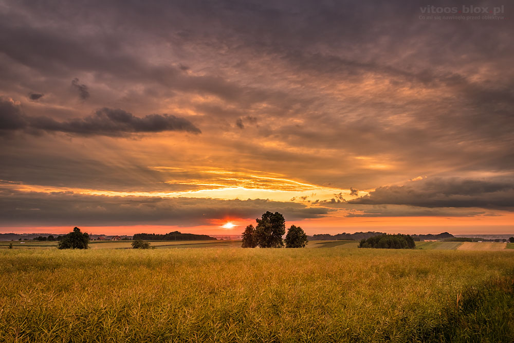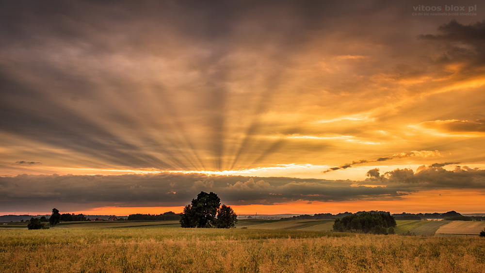 Sezon burzowy, może na szczęście, w tym sezonie omija moją najbliższą okolicę. Z jednej strony lubię fotografować burzowe chmury, ale z drugiej, nauczony doświadczeniem, boję się żeby ta nie wyrządziła szkód w domu i ogrodzie. W czwartkowe popołudnie zauważyłem na radarach rozpoczynającą się burzę w niedalekiej okolicy i wyjechałem jej na spotkanie. Musiałem ją wyprzedzić, aby sfotografować od czoła. Liczyłem na chmurę szelfową, ale tej niestety nie było. Zrobiłem jedną jedyną panoramę, bo chwilkę później już zaczęło padać, a wracając do domu natknąłem się na połamane gałęzie drzew na drogach.
