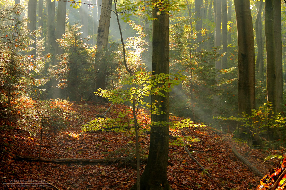 Podczas jednego z moich leśnych spacerów, podczas lekkiej mgiełki tu i ówdzie pojawiały się takie smugi od światła słonecznego.