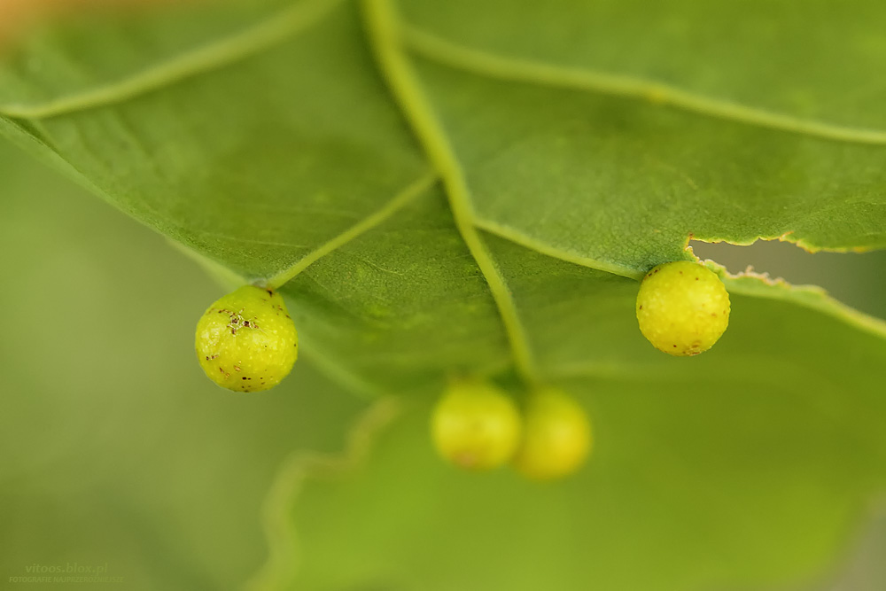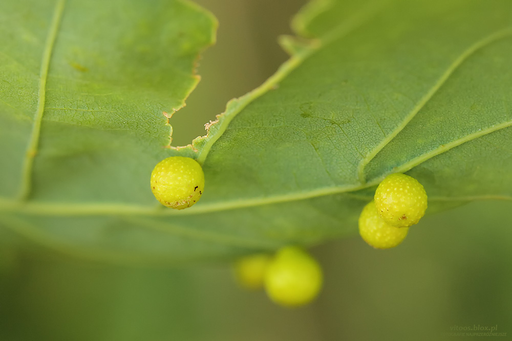 Już ponad miesiąc temu trafiłem na malutkie galasy galasówki dębianki (Cynips quercusfolii). Na tym samym drzewie, co poprzedniego sezonu.