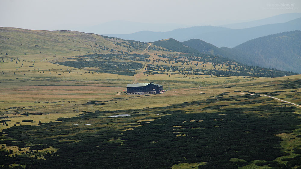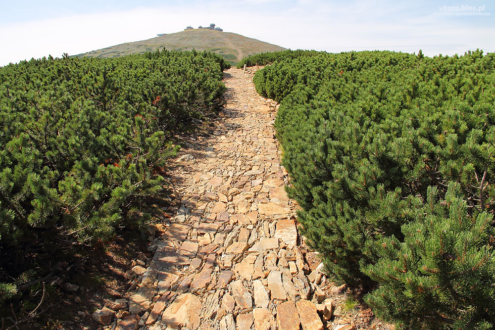 Pewnego upalnego sierpniowego dnia ni stąd ni zowąd wybrałem się na Śnieżkę. Wstępnie chciałem przespacerować się z Przełęczy Okraj do Przełęczy Sowiej czerwonym szlakiem i wrócić niebieskim przez Skalny Stół. Kiedy po niecałej godzinie dotarłem do Przełęczy Sowiej i zobaczyłem, że na Śnieżkę jest już całkiem blisko, ruszyłem dalej.