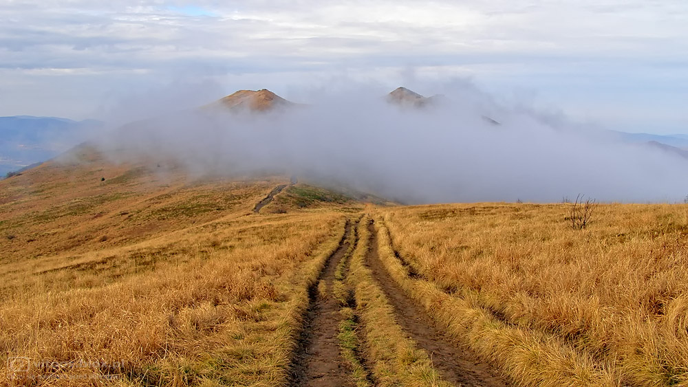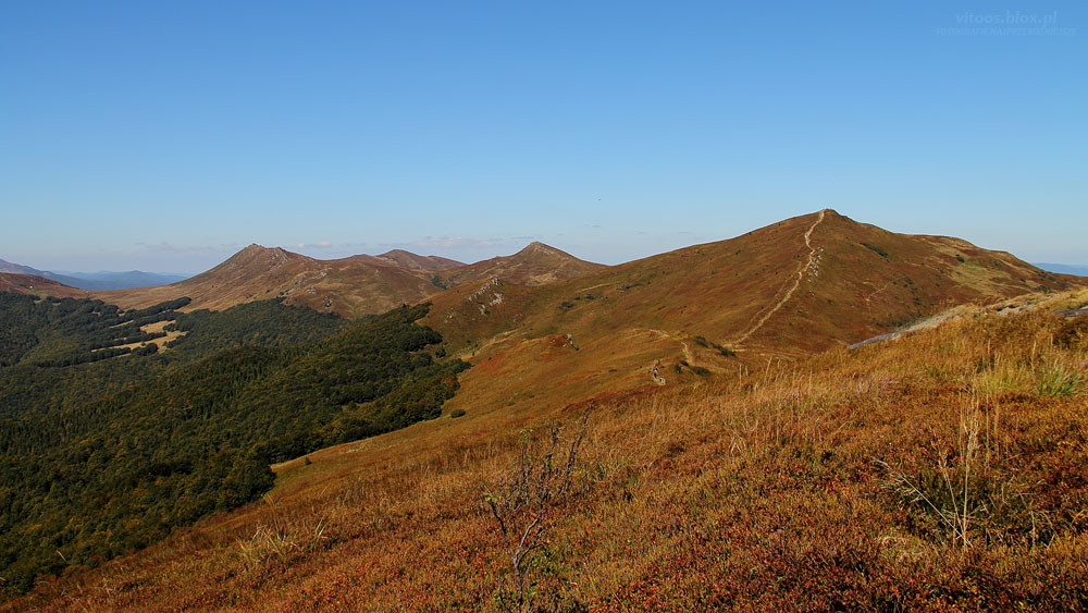 A tu na Rozsypaniec, a w tle Bieszczady po ukraińskiej stronie.
