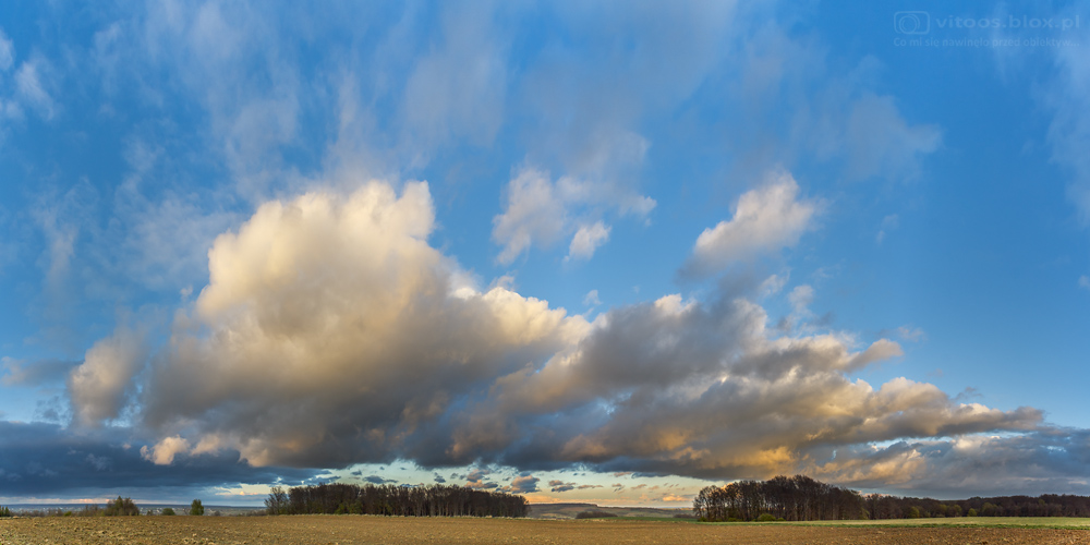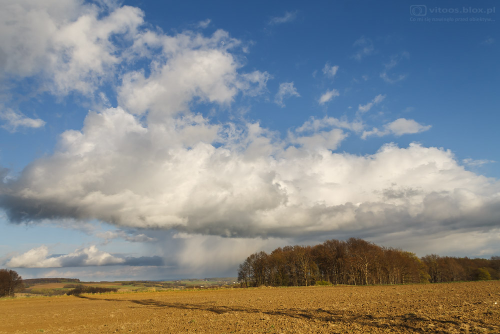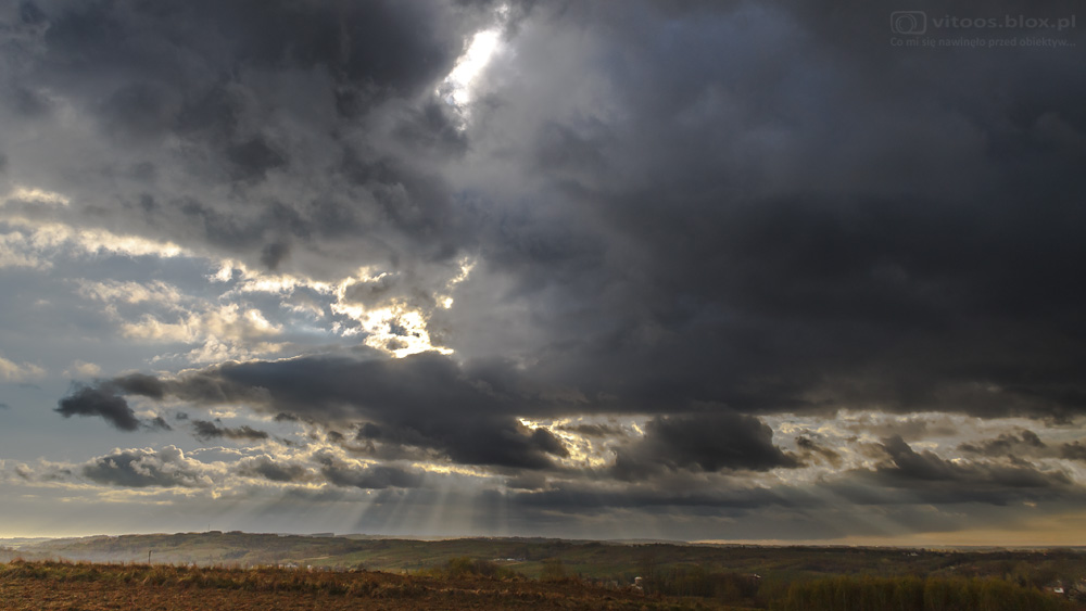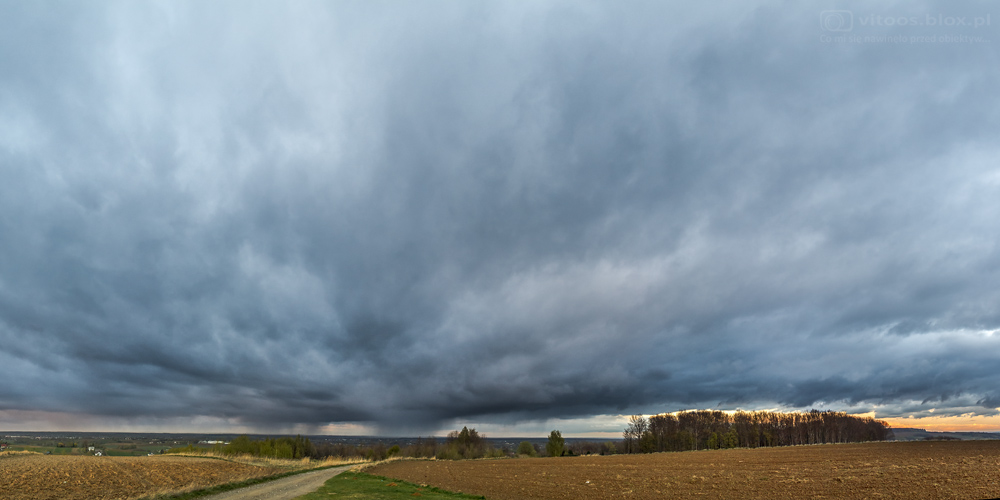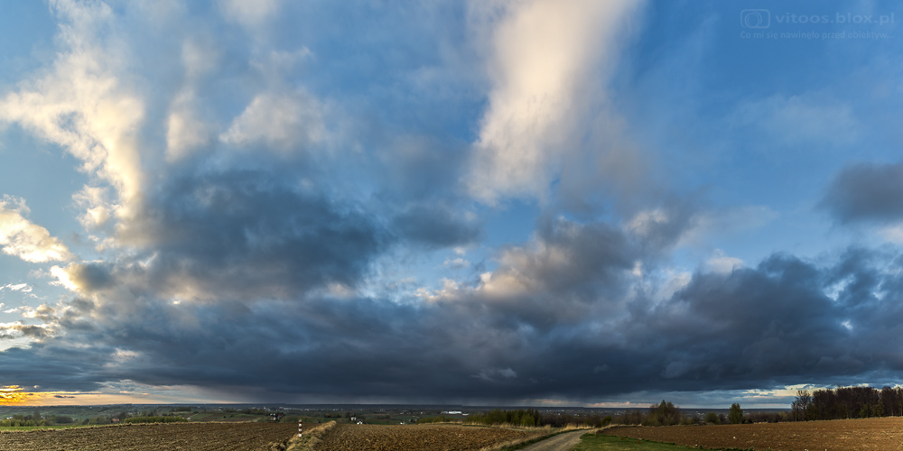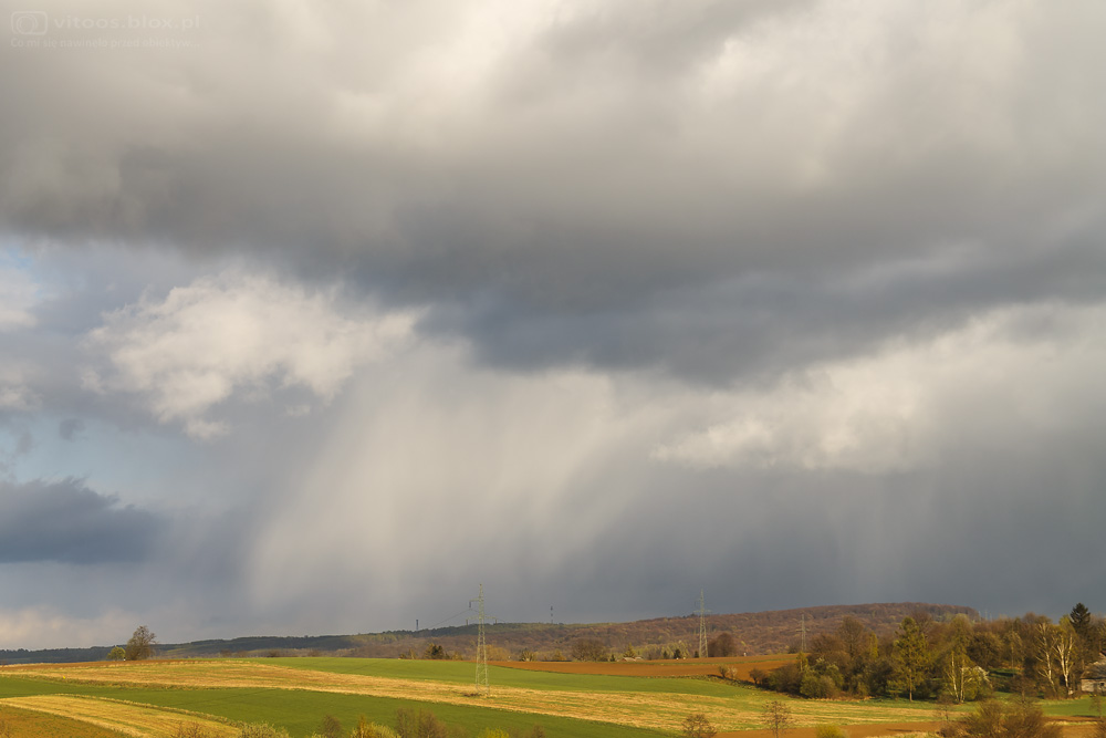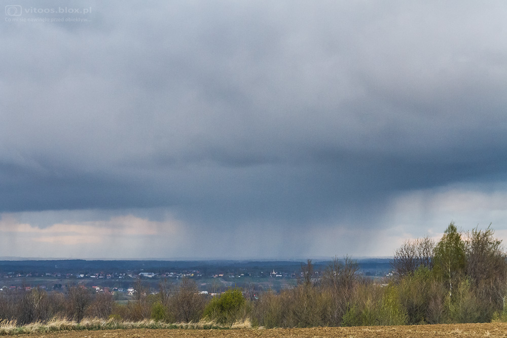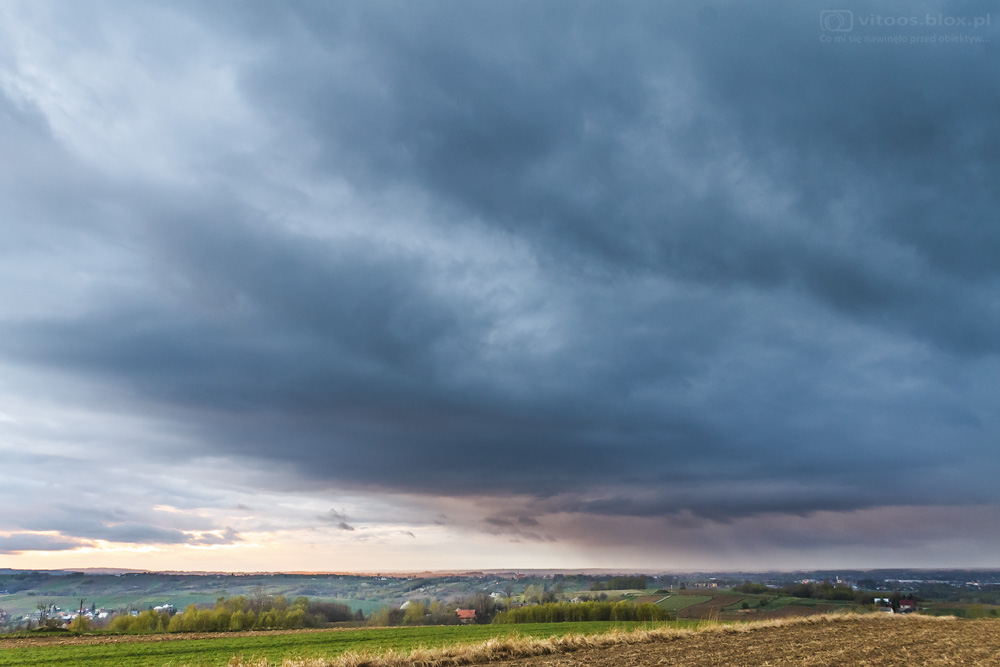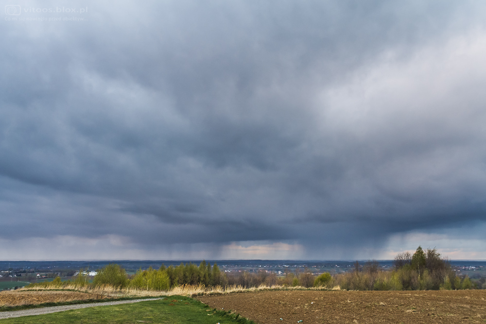 Zerknąłem od niechcenia na radary wyładowań, a tam okazało się, że niedaleko ode mnie zaczyna rozwijać się komórka burzowa. Tym razem nie pojechałem na najbliższą górkę, ale udałem się trochę dalej od domu, do miejscowości Pstrągowa. Na punkcie widokowym czekały na mnie takie widoki.