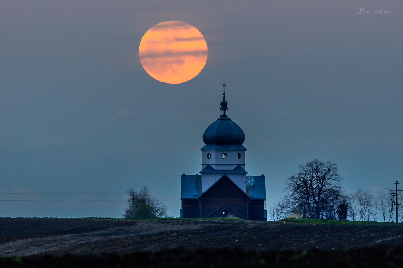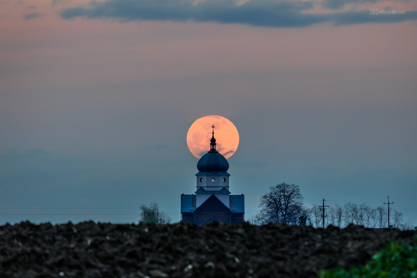 Wielka Sobota. Z jednej strony zachodzące słońce, ale to z drugiej strony działa się prawdziwa magia. Wschodzący Księżyc w pełni zaczynał powoli unosić sie nad horyzontem. Tym razem wybrałem się na gościnne występy w okolice Przemyśla, a dokładnie w okolice Cerkwi Przemienienia Pańskiego w Wyszatycach.
