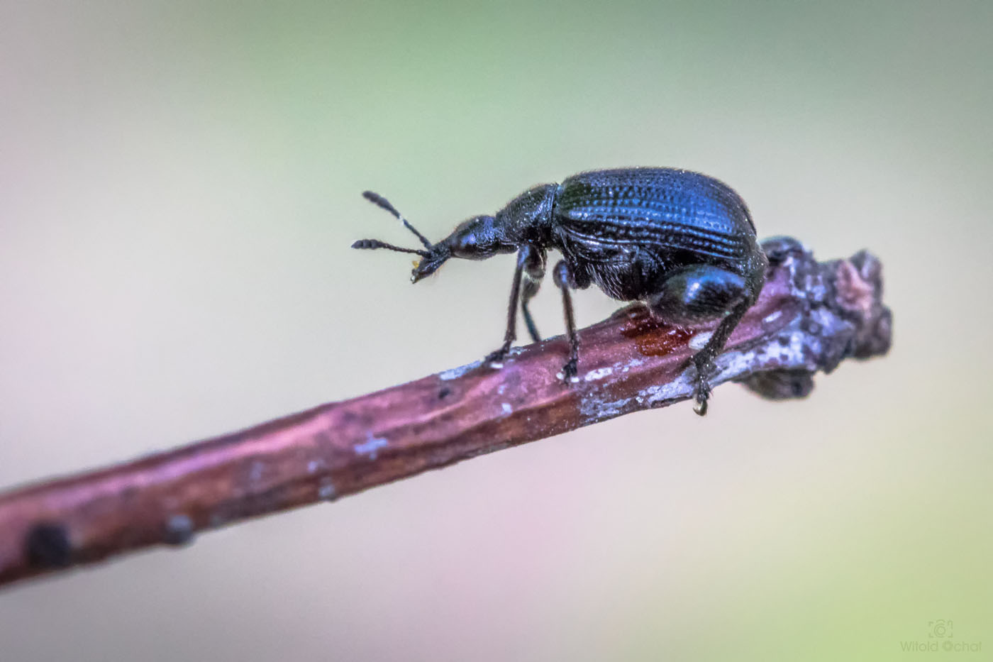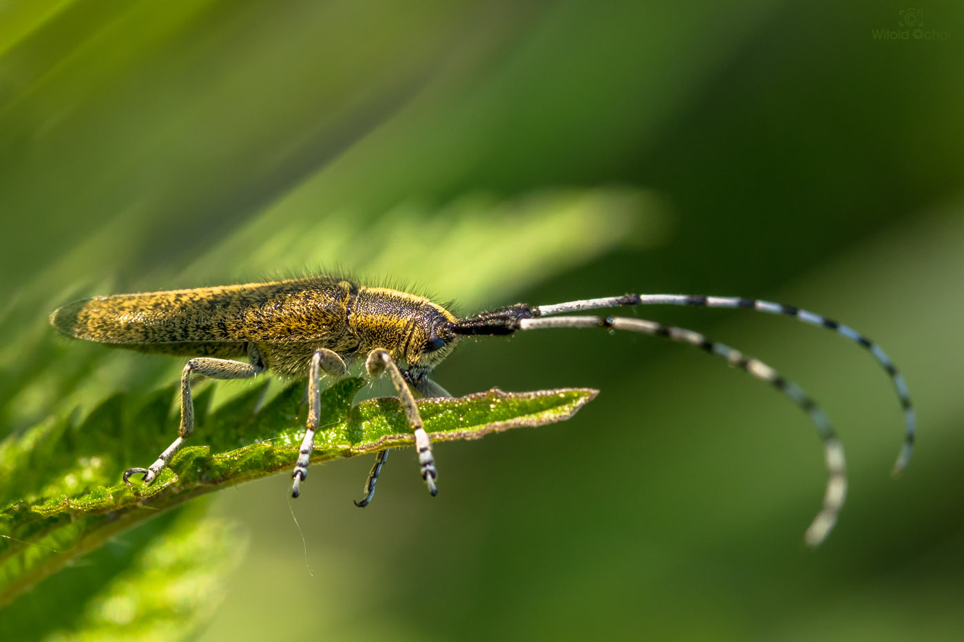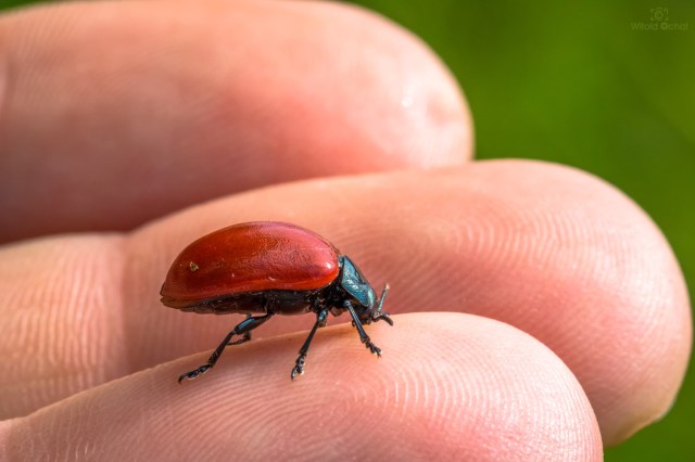 Ciepłe i słoneczne wieczory wrześniowe kilkakrotnie spędzałem na okolicznych łąkach w poszukiwaniu owadów. Jeden z nich sam do mnie przyleciał. Potężny chrząszcz długości aż około trzech centymetrów wylądował na mojej koszulce i był niezwykle chętny do pozowania. To Rzemlik topolowiec (Saperda carcharias).