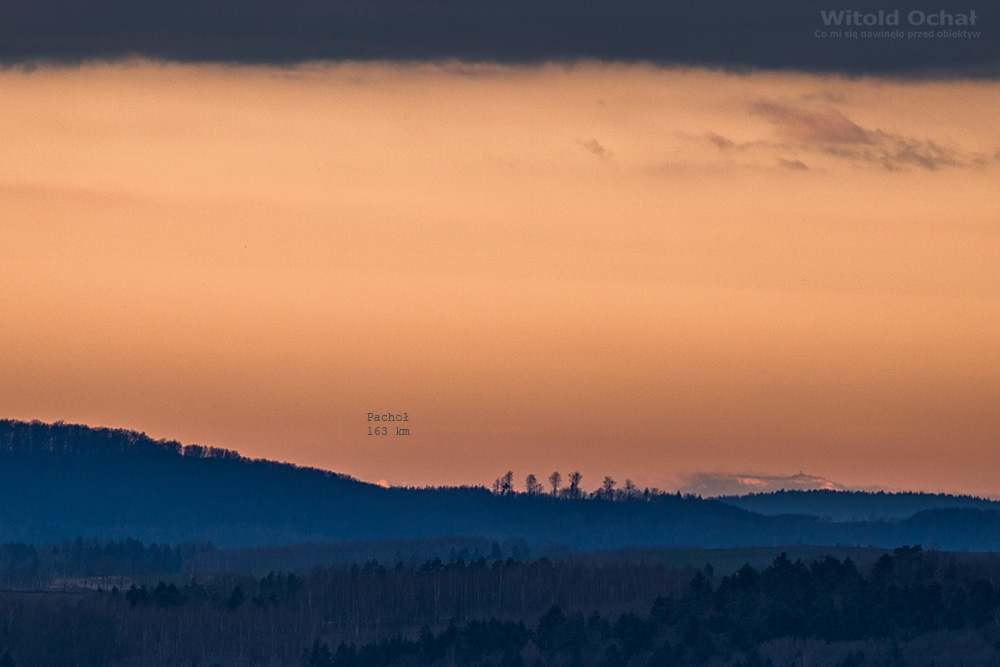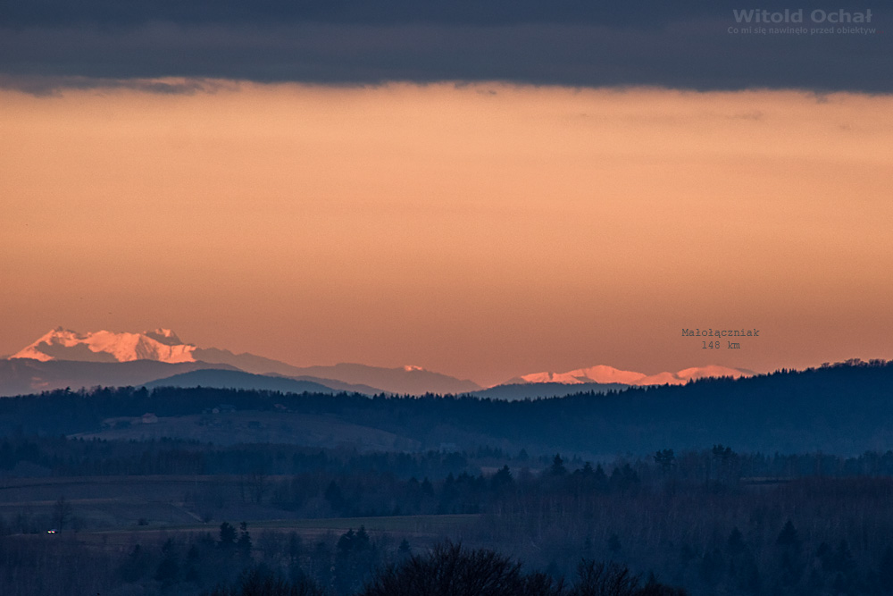 Nie minęły emocje po niedzielny dalekoobserwacyjnych warunkach, a dziś powtórka z rozrywki. Niby za każdym razem te same, ale zawsze coś innego. Tym razem Tatry obserwowane z odległości ok. 140 km w linii prostej pod miękką pierzynką chmur. Do tego wspaniałe kolory, zwłaszcza po zachodzie słońca.