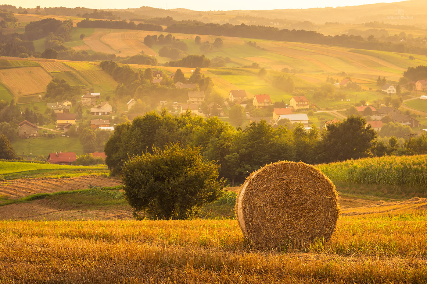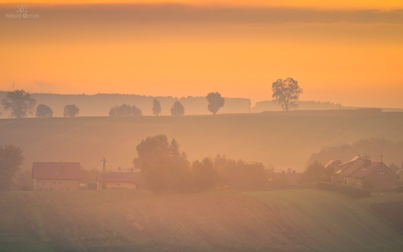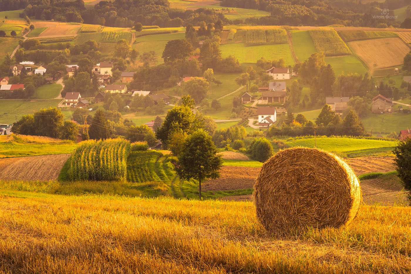 Lubię fotografować w tym miejscu. Pagórki u nas co prawda są, ale niezbyt wysokie i większość z roku na rok coraz bardziej porośnięta lasami. A tutaj widoczna jest urokliwa, choć niezbyt rozległa dolinka, gdzie zostały pola uprawne i poza tym nie ma żadnych widocznych śladów cywilizacji. Mowa o zabudowaniach i wszechobecnych liniach energetycznych.