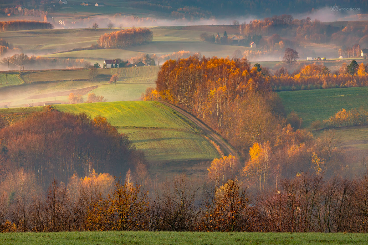 Późna jesień też może zachwycać. Resztki liści na drzewach, poranne mgły i nieśmiałe promienie wstającego słońca potrafią namalować cudne obrazki. Niewysokie, ale liczne pagórki Pogórza Strzyżowskiego są bardzo malownicze, zwłaszcza te w miejscowości Pstrągowa. Czasami odnoszę wrażenie, że tej tylko miejscowości powinienem poświęcić kilka miesiący na „zeksplorowanie” jej wszerz i wzdłuż. I taki mam plan na przyszły rok, jeśli tylko zdrowie pozwoli 😉