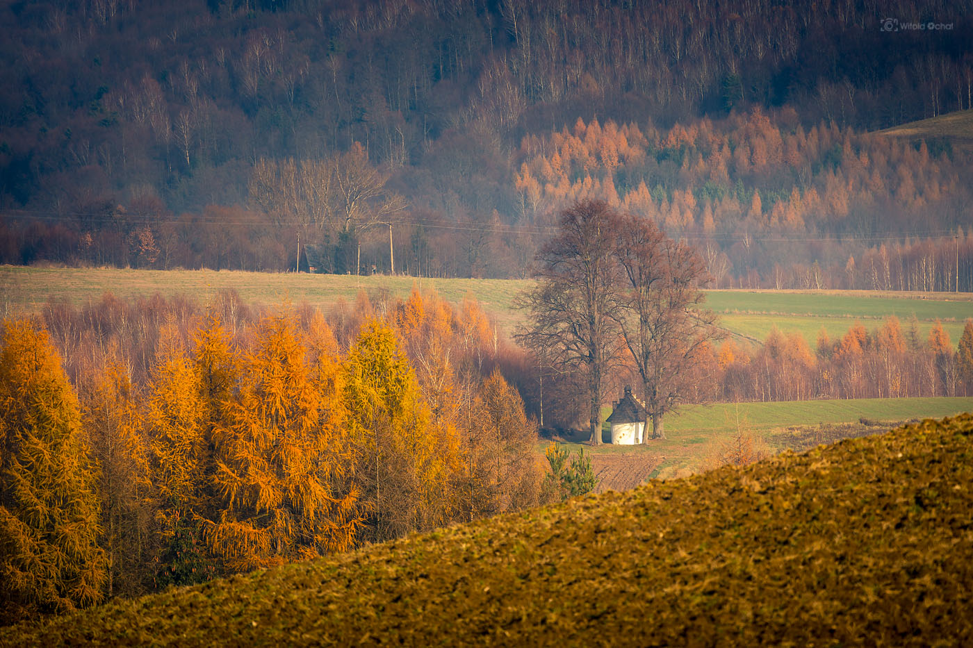FOT. WITOLD OCHAŁ POWIAT STRZYŻOWSKI PSTRĄGOWA KAPLICZKA POGÓRZE STRZYŻOWSKIE JESIEŃ
