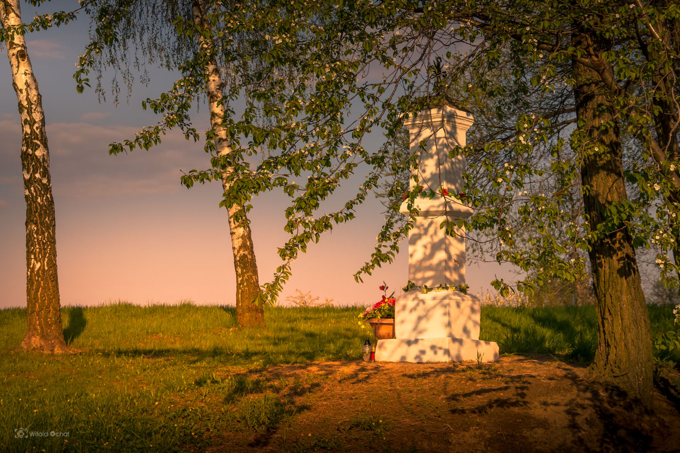 FOT. WITOLD OCHAŁ POWIAT ROPCZYCKO-SĘDZISZOWSKI SIELEC DRZEWO KRZYŻ WIECZÓR ZACHÓD SŁOŃCA