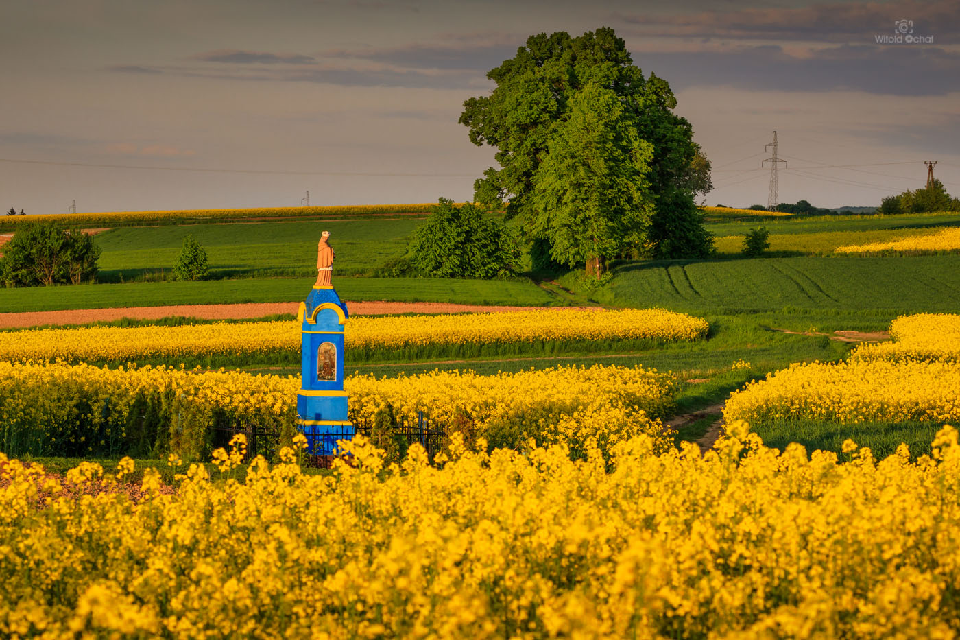 FOT. WITOLD OCHAŁ POWIAT ROPCZYCKO-SĘDZISZOWSKI FOTOGRAFIA KRAJOBRAZOWA PODKARPACIE GNOJNICA KAPLICZKA NEPOMUCENA RZEPAK WIOSNA POLA