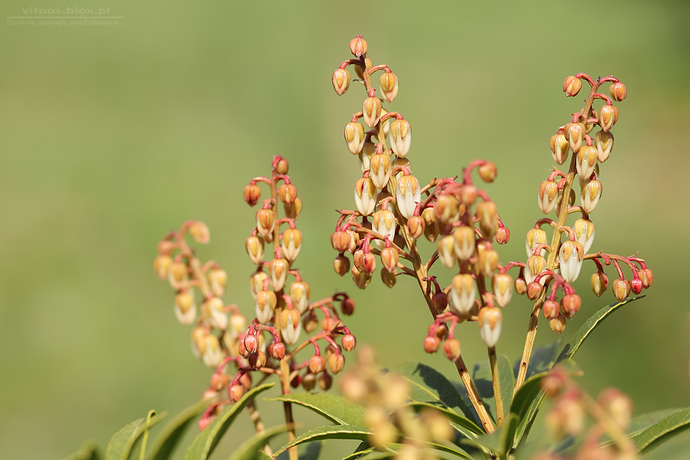 Niepozorny krzaczek z niego i nieczęsto zwracam na niego uwagę. W rogu ogrodu rośnie sobie niziutki krzaczek pierisu, który właśnie zaczyna kwitnąć.