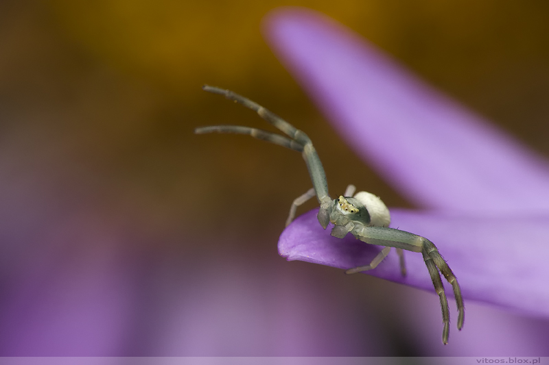 Poprzednie lato obfitowało u mnie w kwietniki (Misumena vatia). One strasznie lubią być fotografowane. Bez marudzenia znoszą trudy modelingu i nie narzekają kiedy transportuje je z kwiatka na kwiatek 😉