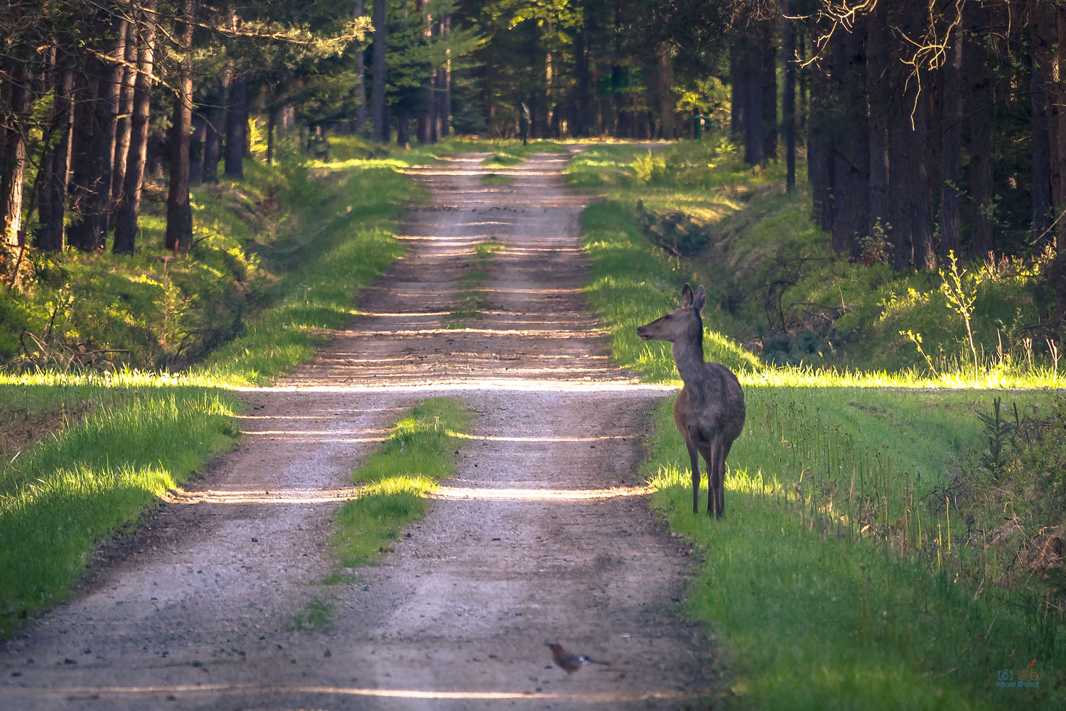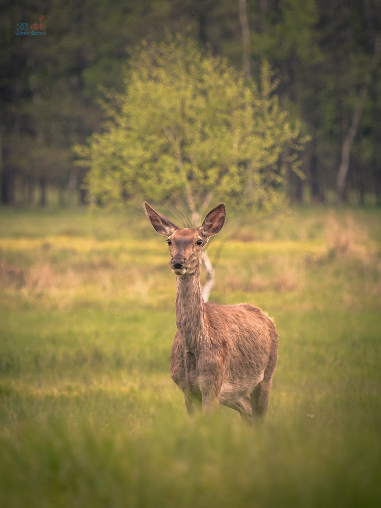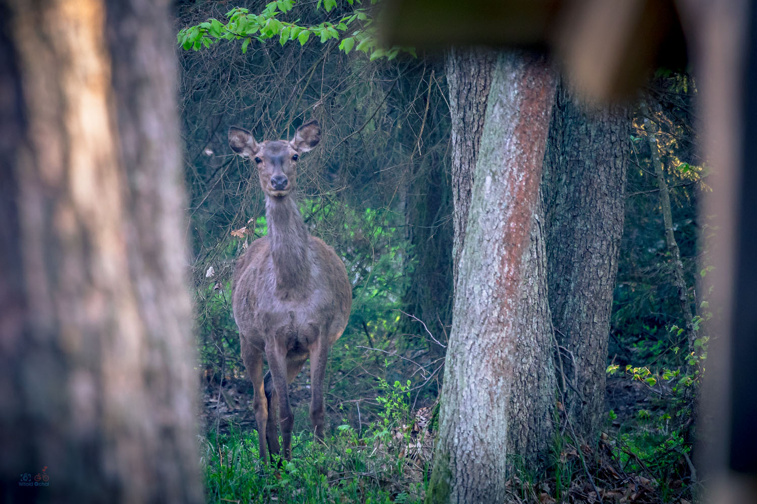 Jakież to były emocje. Dojechałem rowerem na koniec leśneij drogi. Dalej była już tylko polana. A na tej polanie… jakieś 150 metrów ode mnie pasły się łanie! Na trzęsących nogach zsiadłem z roweru, zabrałem aparat i zająłem strategiczne miejsce w rowie. Co tam woda i przemoczone buty!