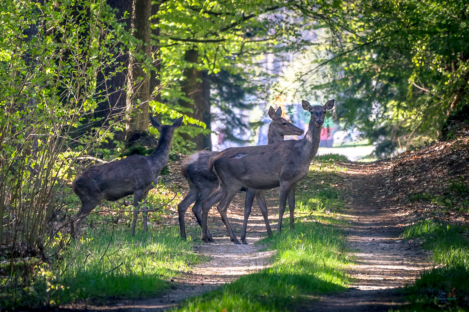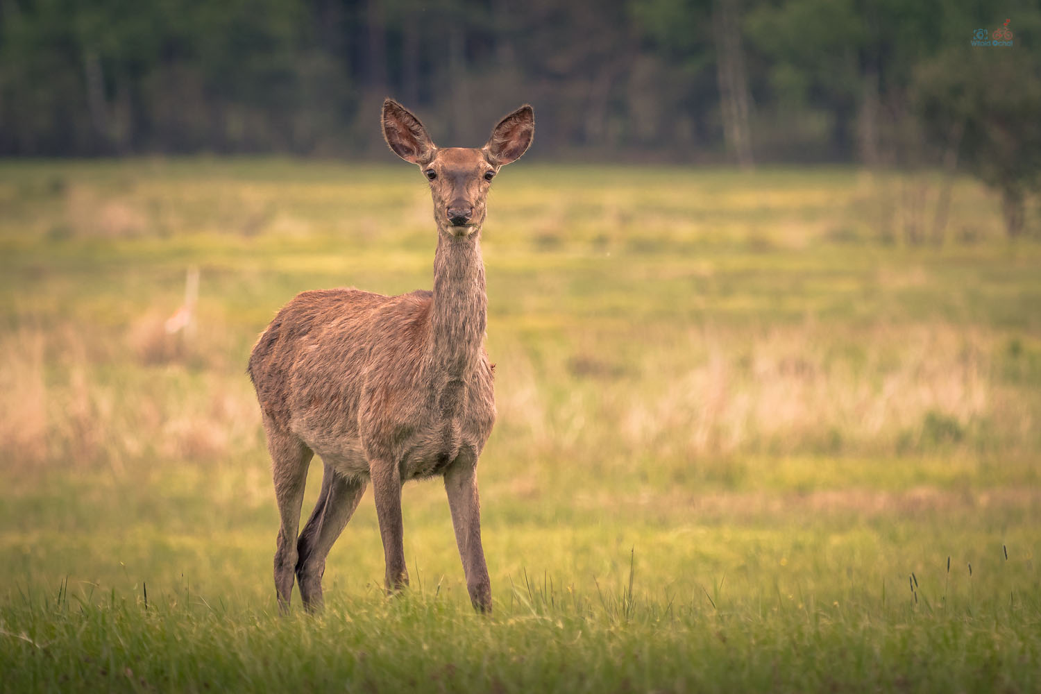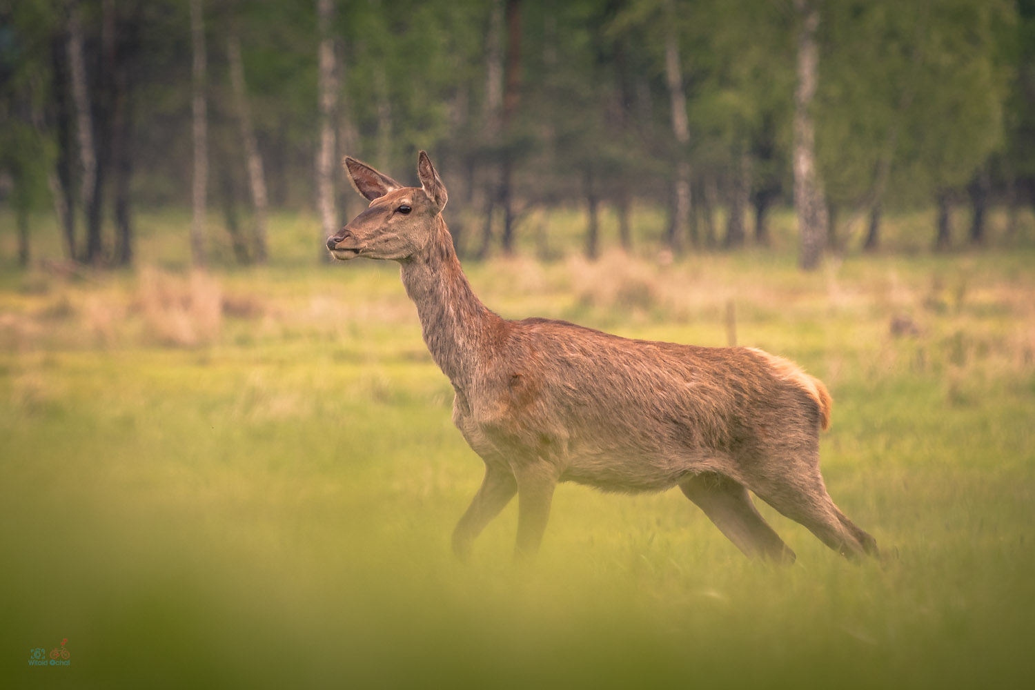 Jakież to były emocje. Dojechałem rowerem na koniec leśneij drogi. Dalej była już tylko polana. A na tej polanie… jakieś 150 metrów ode mnie pasły się łanie! Na trzęsących nogach zsiadłem z roweru, zabrałem aparat i zająłem strategiczne miejsce w rowie. Co tam woda i przemoczone buty!
