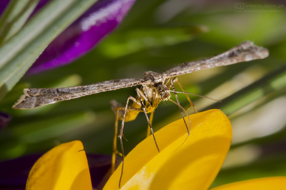 W poniedziałek spotkałem… piórolotka. Wylądował znienacka na krokusach, którym akurat robiłem zdjęcie. Na łodyżce ciemiernika siedziała sobie malutka biedronka. Na trzepaku siedziała sobie mucha ze swoją niewielką zdobyczą. Tuż obok swój żywot przedwcześnie zakończyła ochotka. W domu obudził się złotook i przysiadł na zielonej ścianie w nadziei, że nikt go nie zauważy. Niestety został wyproszony do piwnicy.