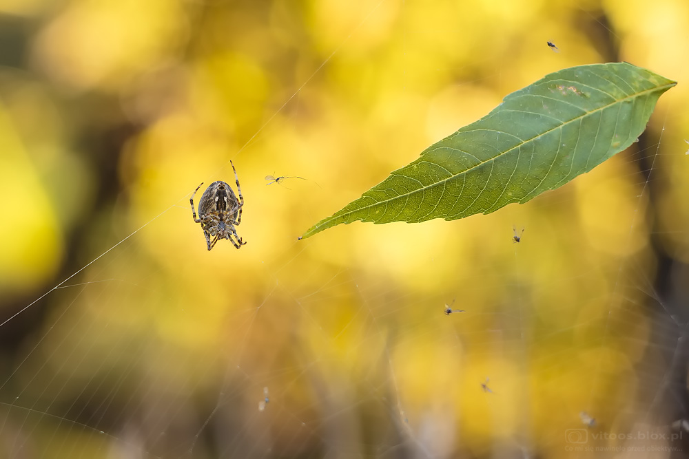 Ogrodowe pająki i ich zdobycze, które uwieczniłem oczywiście heliosem, którego prawie w ogóle już nie odpinam od aparatu.