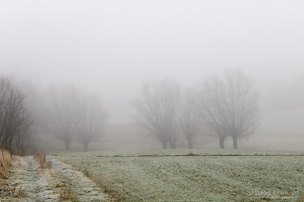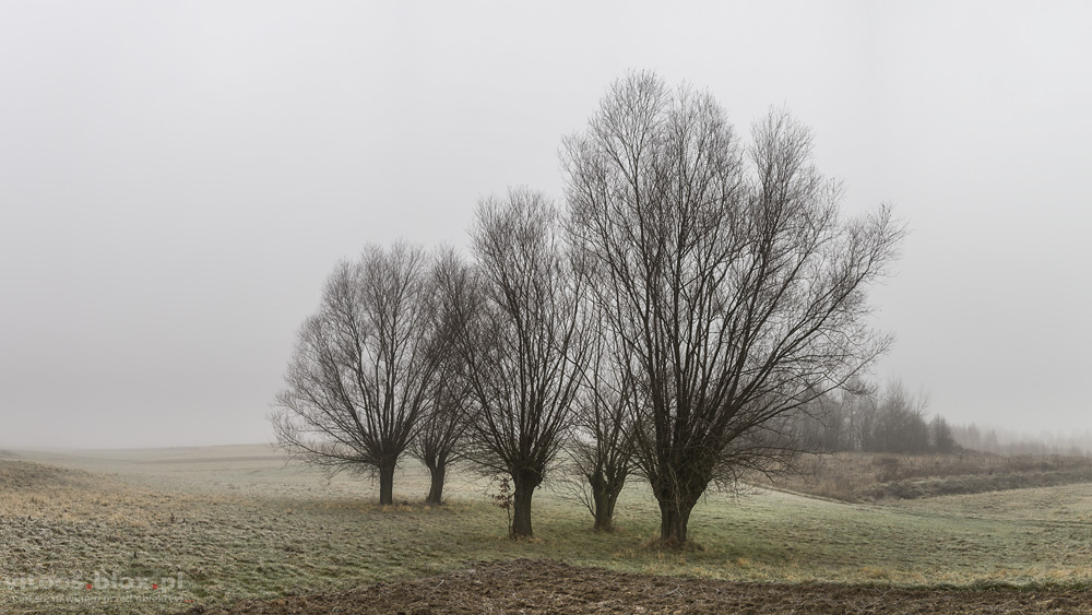 FOT. WITOLD OCHAŁ POWIAT ROPCZYCKO-SĘDZISZOWSKI FOTOGRAF KRAJOBRAZU ZAGORZYCE WIERZBY MGŁA PORANEK MGLISTY ZŁA WIDOCZNOŚĆ KLIMAT