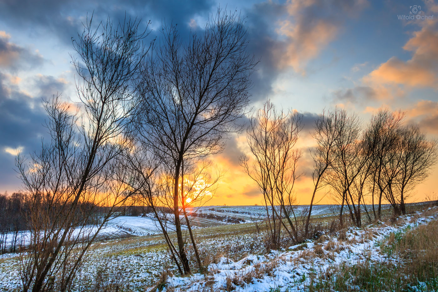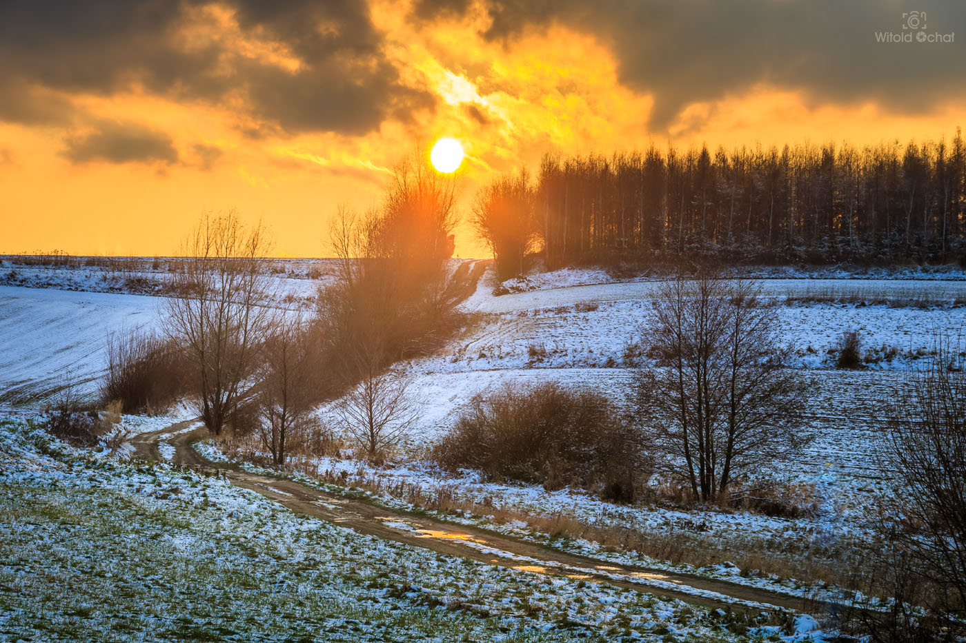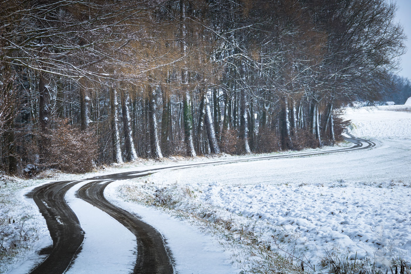 Wstałem przed świtem. Ale to nic nowego w weekendy. Po nocy śniegu jeszcze przybyło. Na drogach (na szczęście odśnieżonych) pusto, bo kto w niedzielę wstaje o takiej porze. Pojechałem na gościnne występy do parku Zespół Parkowo Dworskiego i Folwarcznego w Wiśniowej. Cóż, szczerze mówiąc park ten o wiele lepiej prezentuje się choćby jesienią, ale skoro już tam byłem, to brnąc w śniegu zrobiłem kilka pocztówek na pamiątkę.