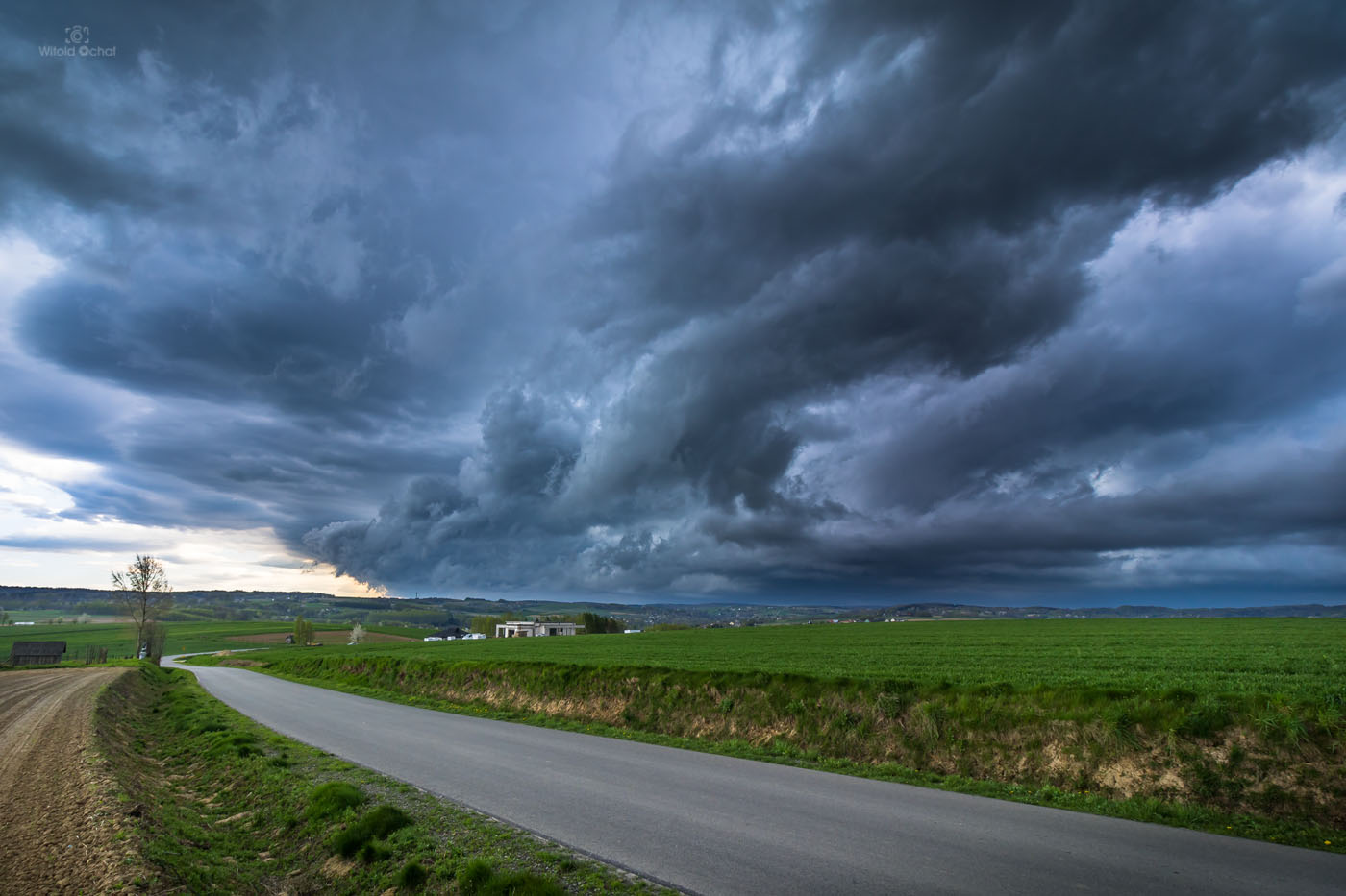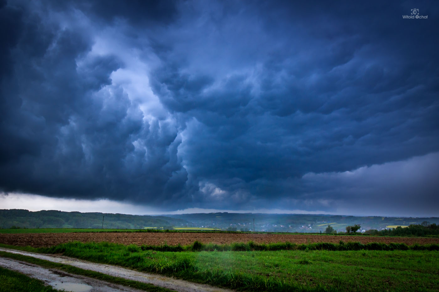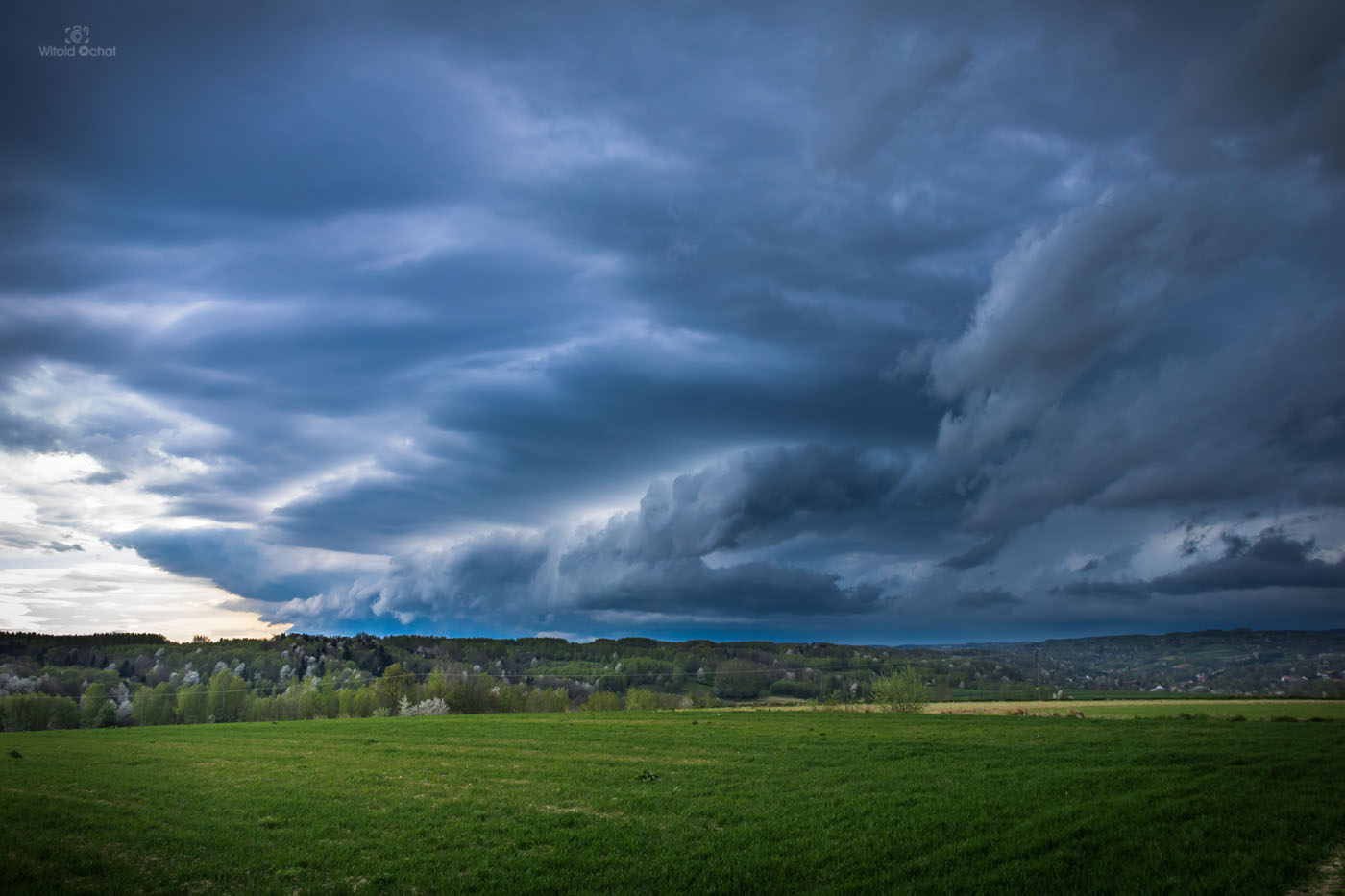 FOT. WITOLD OCHAŁ POWIAT ROPCZYCKO-SĘDZISZOWSKI FOTOGRAFIA KRAJOBRAZOWA PODKARPACIE PODLASEK NOCKOWA PROMIENIE ZBLIŻAJĄCA SIĘ BURZA SMUGI OPADOWE ULEWA