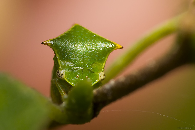 O sfotografowaniu tego mikroskopijnego stworzenia marzyłem od kiedy fotografuję. Już się parę razy na niego „zasadzałem”, ale z mizernym skutkiem. Tym razem zauważyłem go spacerującego po ogrodowym stole, czyli został mi podany dosłownie i w przenośni jak na tacy 😉