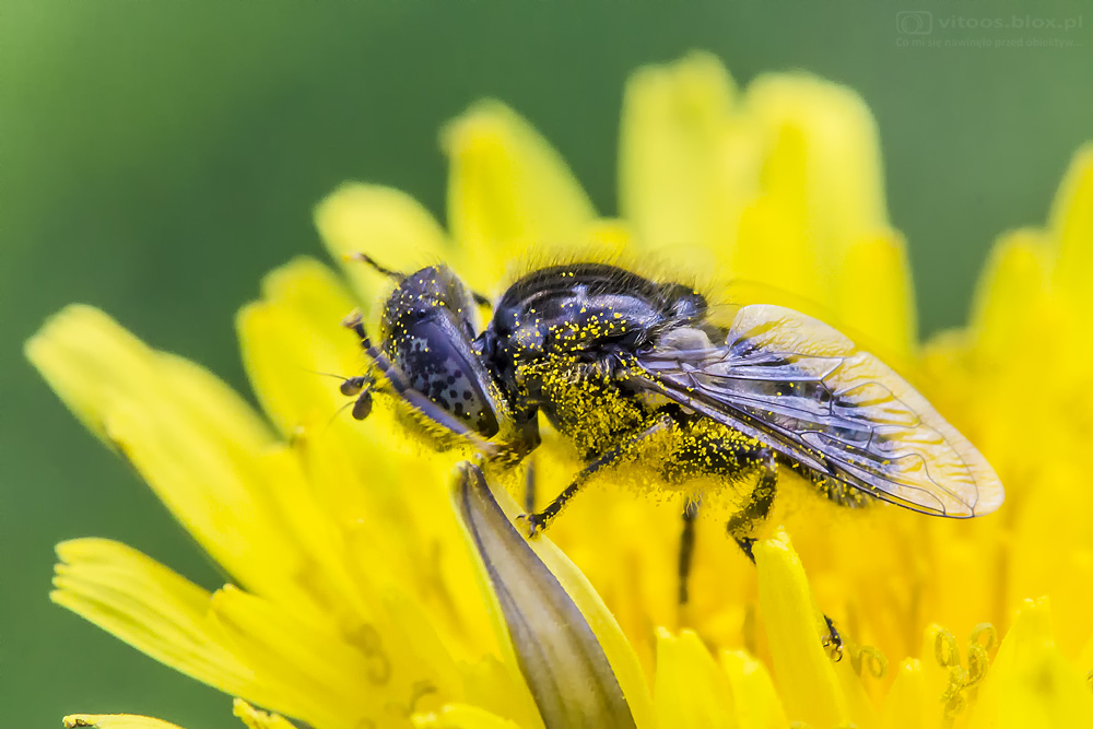 Szczególnie moją uwagę przykuwa motyl, którego żeby uchwycić ze słońce w tle, muszę zanurkować w trawie. Komary wydają się tym zbulwersowane, bo momentalnie cały ich hufiec siada mi na plecach delektując się moją krwią. Tuż obok na wysokiej baldaszkowatej roślinie siedzi dwie muchy, które delektują się nektarem. Zawsze to dla nich jakaś odskocznia od spacerowania, po za przeproszeniem odchodach, bo one jednak to lubią najbardziej. I nawet zwykłe chaszcze w połączeniu z tym kolorem nieba wyglądają jakoś tak niezwykle.