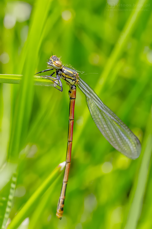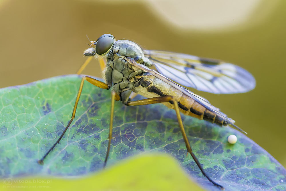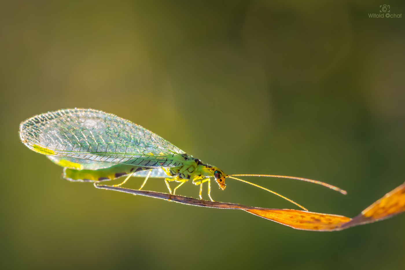 Późny wieczór, słońce nisko. Na niebie nie ma chmur, ale północno zachodni horyzont przybiera cudowny kolor. W połączeniu z żółtą kulką słońca robi za najpiękniejsze jakie można sobie wymarzyć tło do fotografowania łąkowych osobliwości.