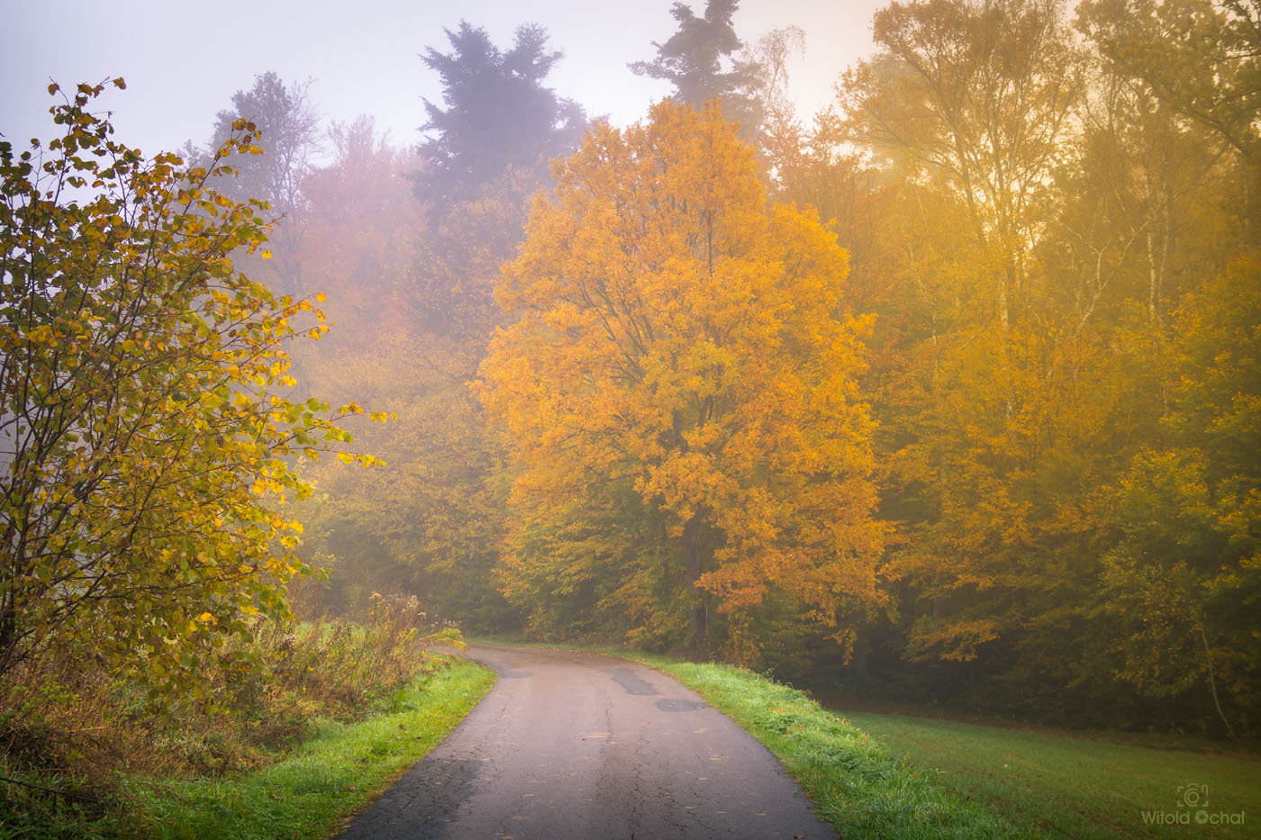 Takie cieplutkie i miękkie barwy zastałem nad pobliskim zalewem 28 października. Słońca długo ociągało się ze wstawaniem. Dopiero godzinę po wschodzie pokonało chmury i nieśmiało zaświeciło swoim rozproszonym w mgle światłem. Dookoła żywej duszy poza jednym wędkarzem, który był zdziwiony moim hobby.