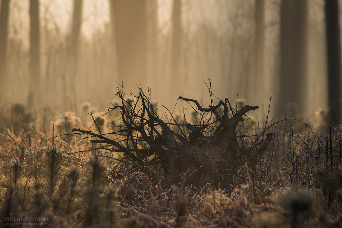 Spacerowałem po lesie, kiedy na drogę wyskoczył mi koziołek. Co za pech, że akurat miałem założony krótki obiektyw, a na aparacie ustawione inne ustawienia. Suma sumarum koziołek wyszedł poruszony. Światło tego ranka było niesamowite, miękkie, rozproszone w zalegającej mgle.