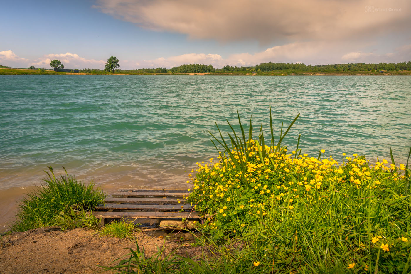 Leniwy poranek, ale nie taki całkiem. Taki, że to człowiek pospał i postanowił wybrać się na jakowyś spacer. Dosyć chłodno, na niebie kilka chmurek, a powietrze przejrzyste i do tego solidny wiatr. Byłem przekonany, że to może oczy jeszcze nie do końca otwarte sprawiły, że widzę turkusowy kolor wody. Zrobiłem kilka zdjęć i to samo na ekranie aparatu. Do dziś nie wiem, czy to sprawka specyficznego porannego światła, chmur, wyzierającego od czasu do czasu ukradkiem słońca, czy może ktoś dosypał jakiś barwnik do wody… 🙂