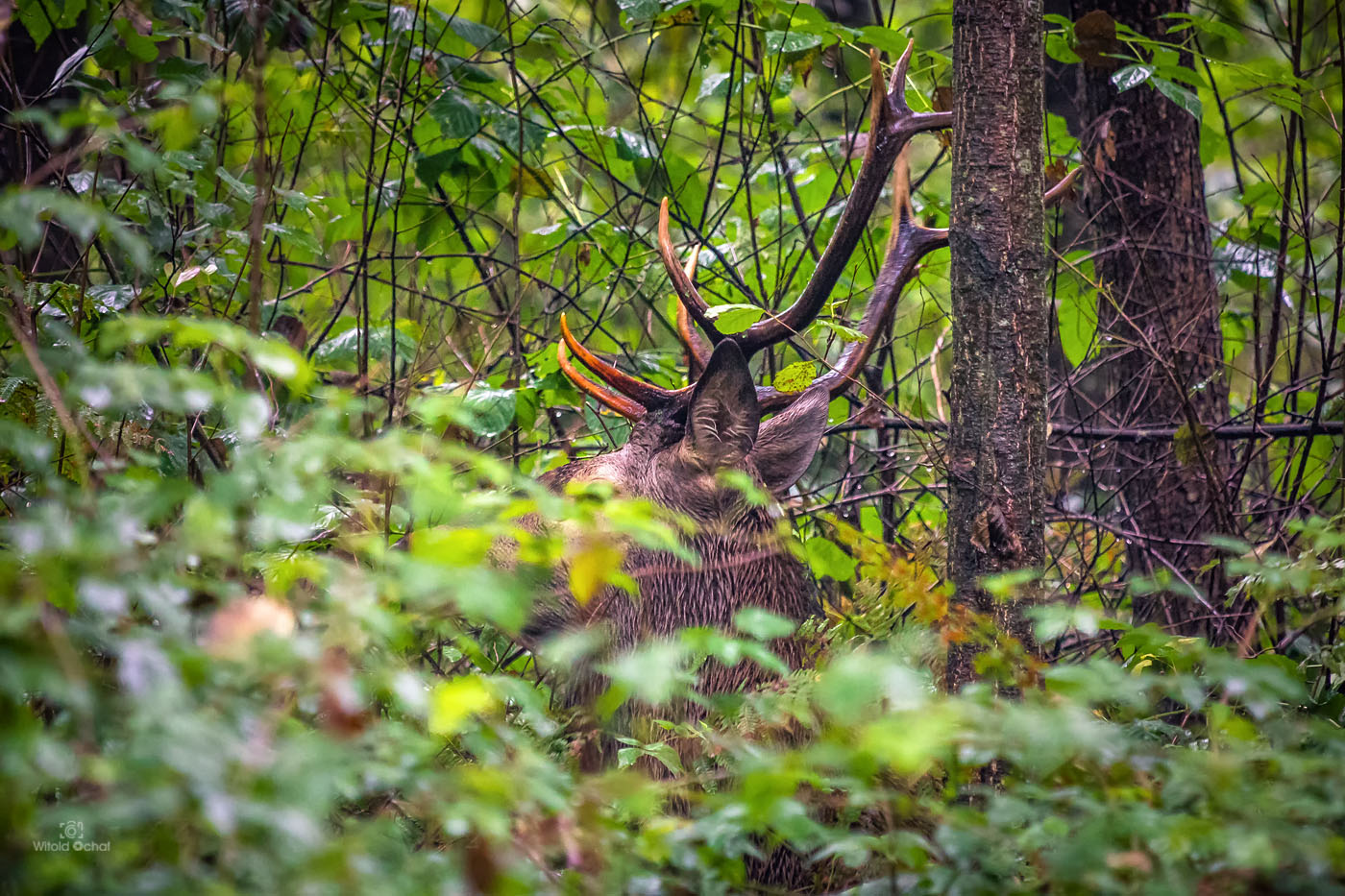 Mimo później godziny (było już grubo po 10-tej) dochodziły mnie odgłosy ryczenia jeleni. Wydawało się, że są tuż obok. Nie będę zgrywał chojraka i przyznam się, że miałem trochę w gaciach, ale ciekawość kazała mi iść dalej i dalej. W końcu w zaroślach zobaczyłem jednego. Odnosiłem wrażenie, że jest na wyciągnięcie ręki, a dzieliło nas na pewno co najmniej dziesięć metrów.