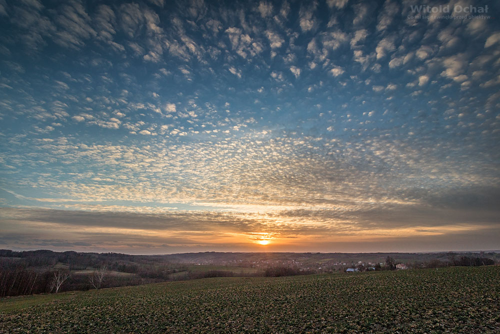 Fotografowałem już w tylu różnych warunkach, że wydawać by się mogło, że nic już nie może mnie zaskoczyć…. A jednak. Dwudziesty pierwszy lutego, kilka minut po wschodzie słońca. Fotografowałem niesamowite chmury na wschodzie. Nauczony doświadczeniem w którymś momencie odwróciłem się w przeciwną stronę, a tam…. Intensywność barw i kolory… sami przyznacie, że wydają się nierzeczywiste. Sam bym w to nie uwierzył, gdybym nie widział na własne oczy i nie zarejestrował tego na matrycy.