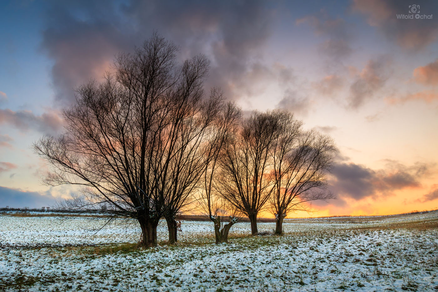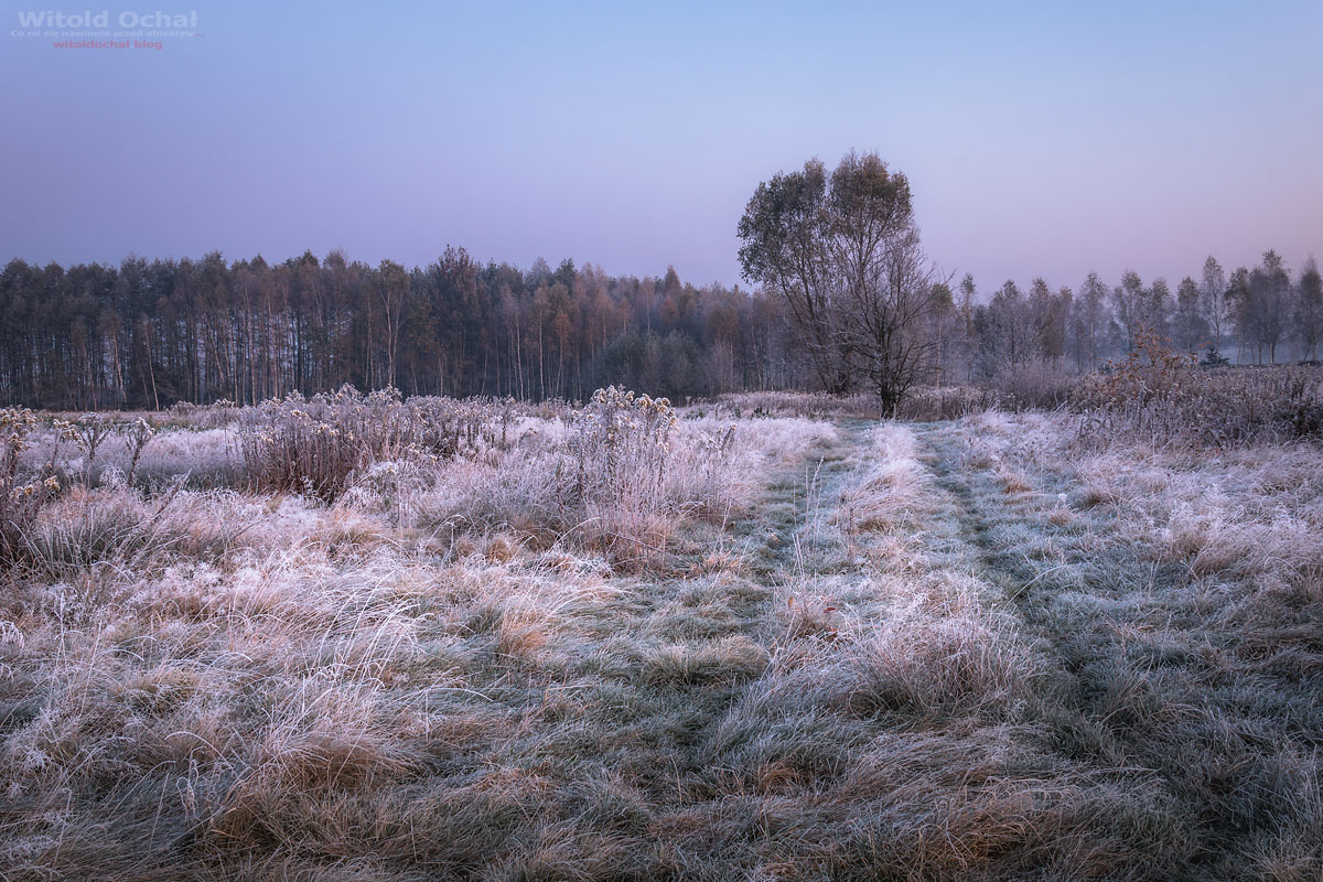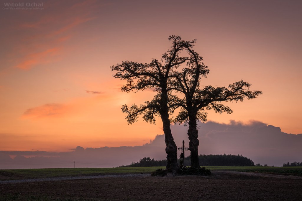 FOT. WITOLD OCHAŁ POWIAT ROPCZYCKO-SĘDZISZOWSKI FOTOGRAFIA KRAJOBRAZOWA NOCKOWA AKACJE PODKARPACIE SAMOTNE DRZEWA W PORANNEJ MGLE