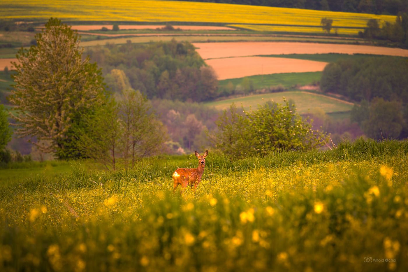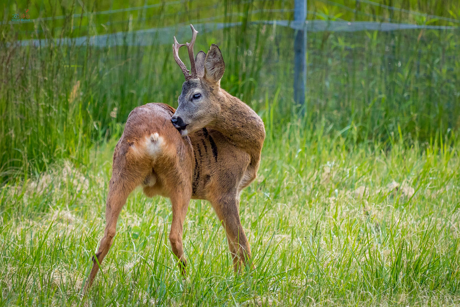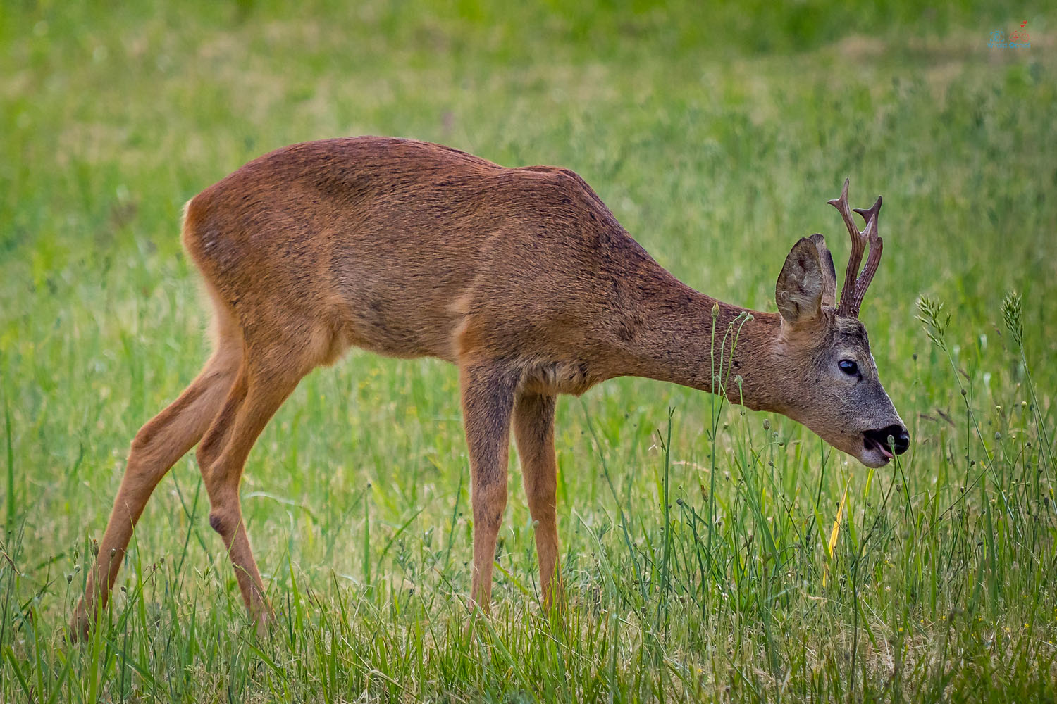 Jadę ja rowerem serwisówką i z daleka zobaczyłem pasącego się na skraju autostrady koziołka. Pierwsza myśl to zostawić rower, schować za krzaki i stamtąd robić fotki. Tak zrobiłem, ale musiałem jechać dalej i przejechać obok niego.