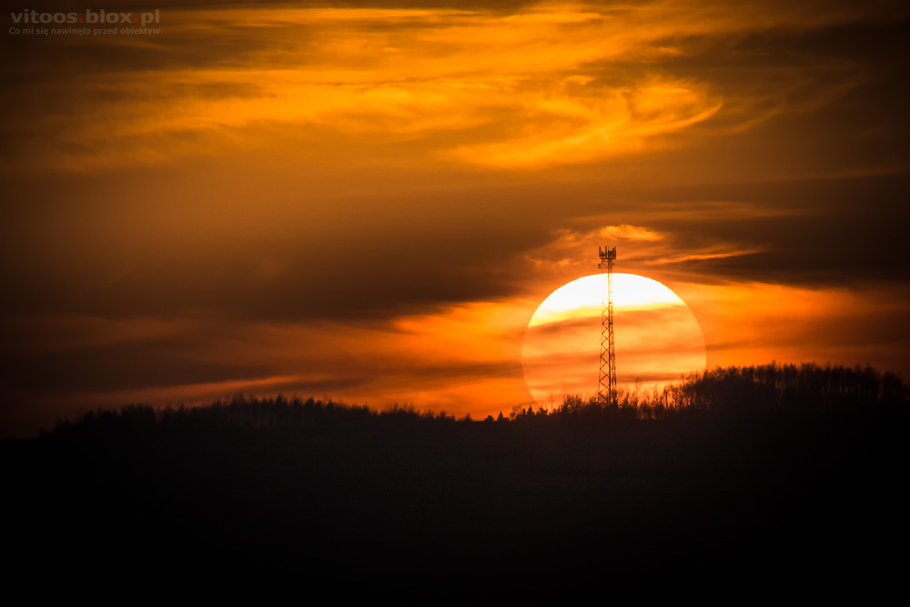 FOT. WITOLD OCHAŁ POWIAT ROPCZYCKO-SĘDZISZOWSKI FOTOGRAF KRAJOBRAZU SŁOŃCE ZA NADAJNIKAMI W ROPCZYCACH