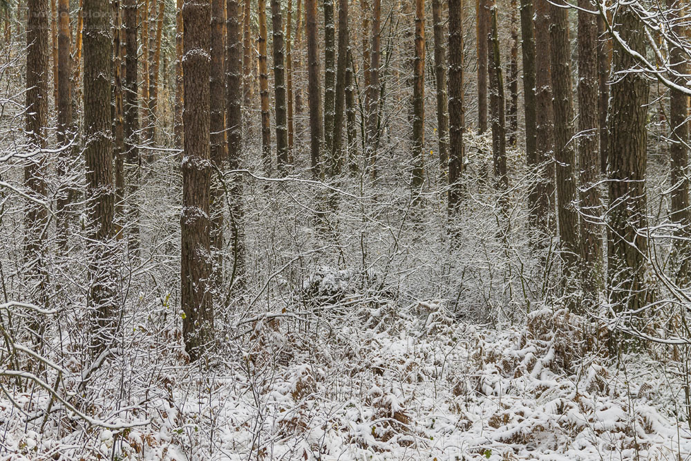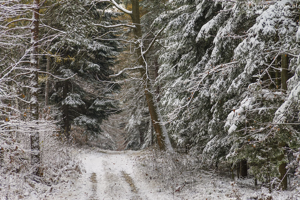Wczoraj padało cały dzień, najpierw deszcz, potem śnieg. Na szczęście dziś rano przestało, a ja w te pędy pogoniłem na spacer do lasu.