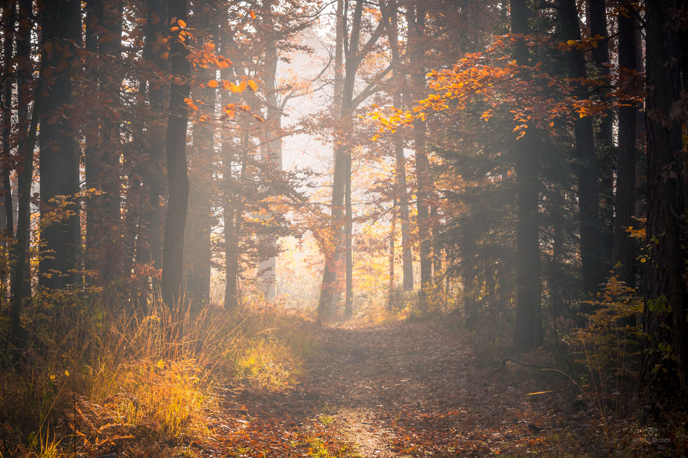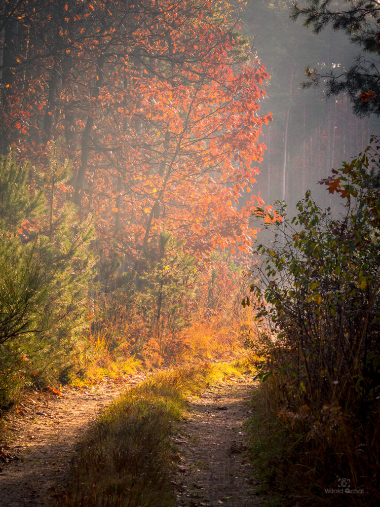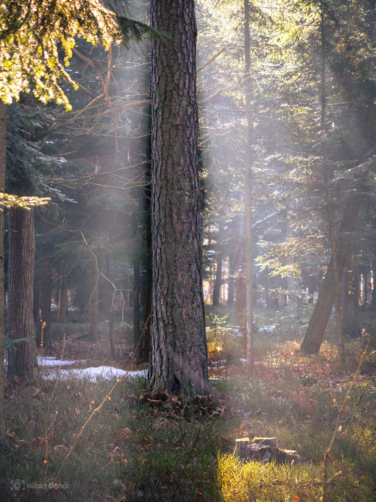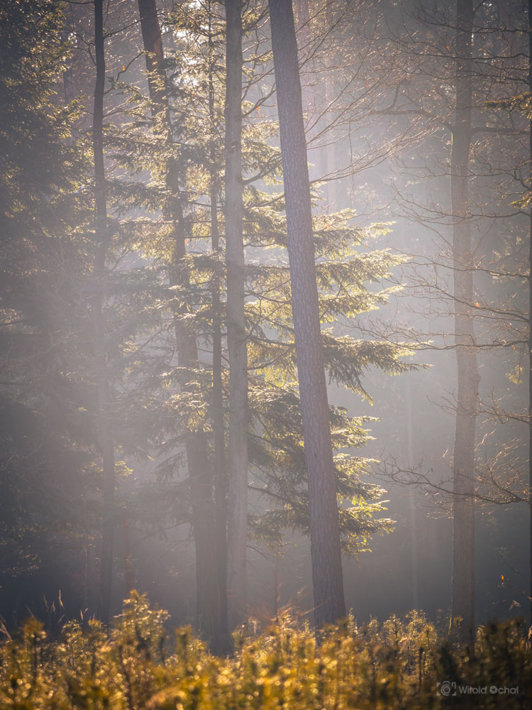 FOT. WITOLD OCHAŁ POWIAT ROPCZYCKO-SĘDZISZOWSKI FOTOGRAFIA KRAJOBRAZOWA KAMIONKA LAS GRA ŚWIATŁA I MGŁY W LESIE