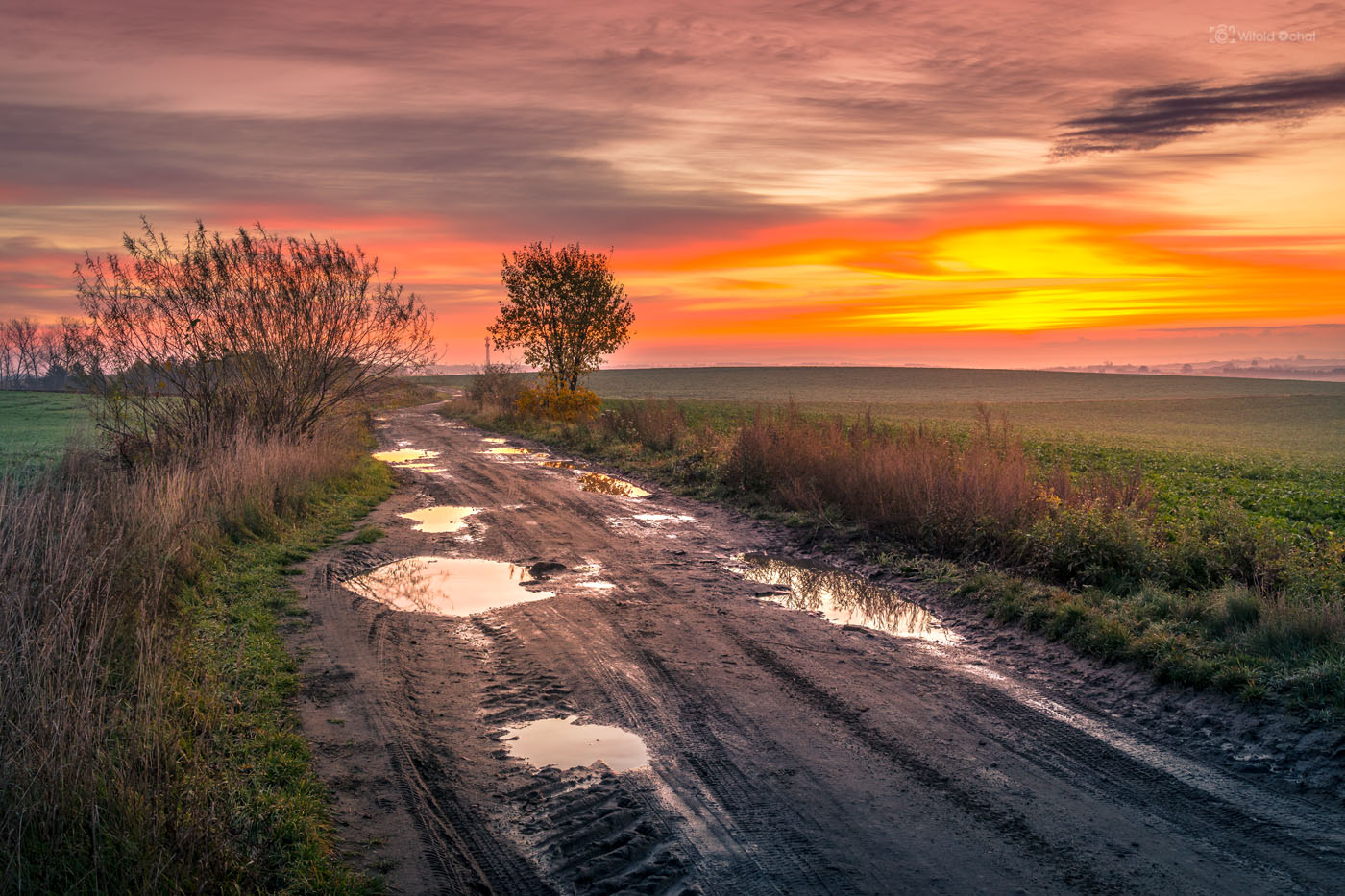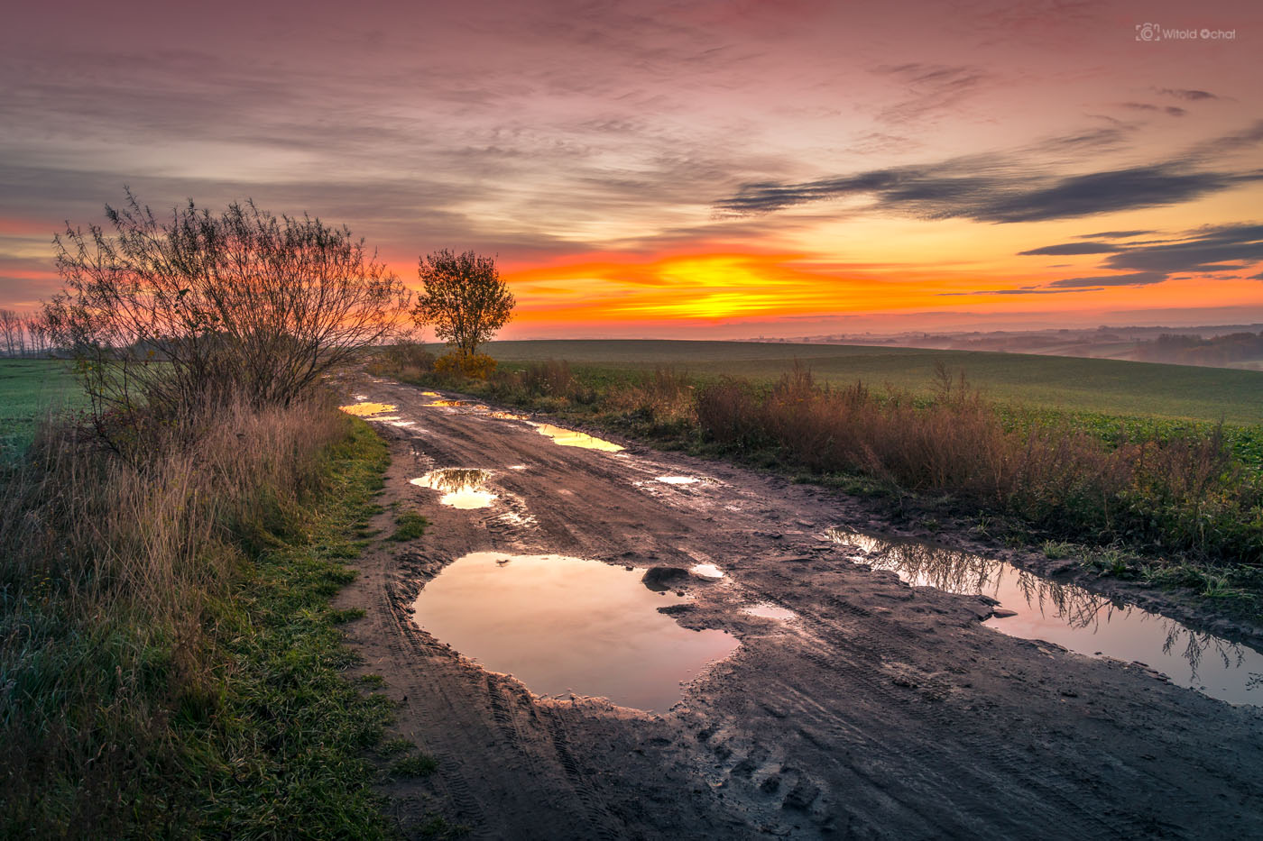 Byłem już w tym miejscu kilka razy, ale tym razem trafiłem na niezwykłe światło. Niezwykle wilgotny poranek, kałuże na drodze i polach, a do tego malowniczy słup słoneczny na niebie. Delikatne, a zarazem kontrastowe kolory zaskoczyły mnie bardzo pozytywnie, ładując endorfinami 😉