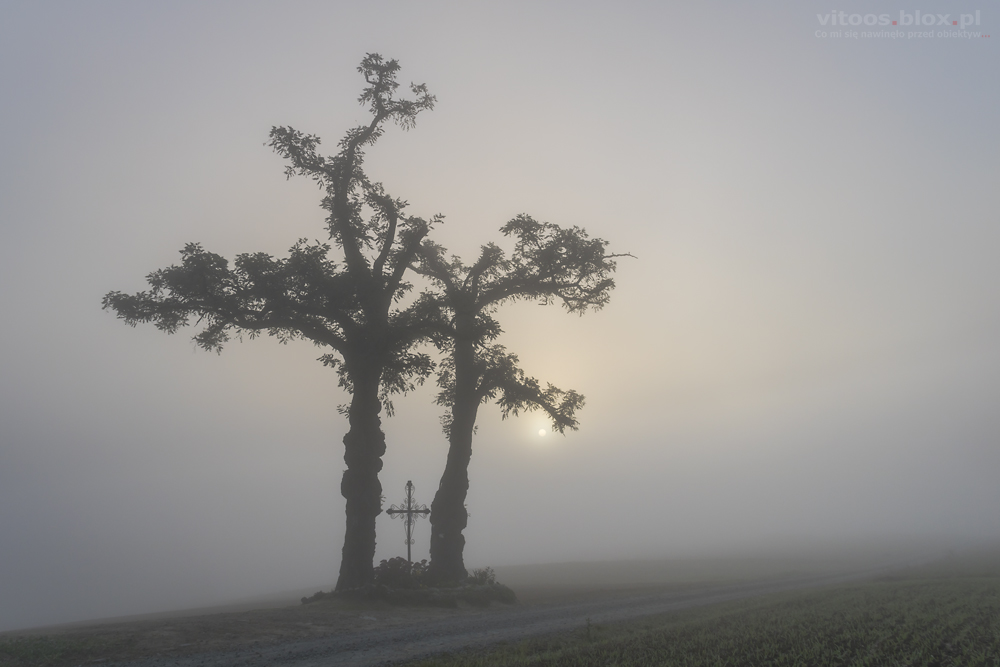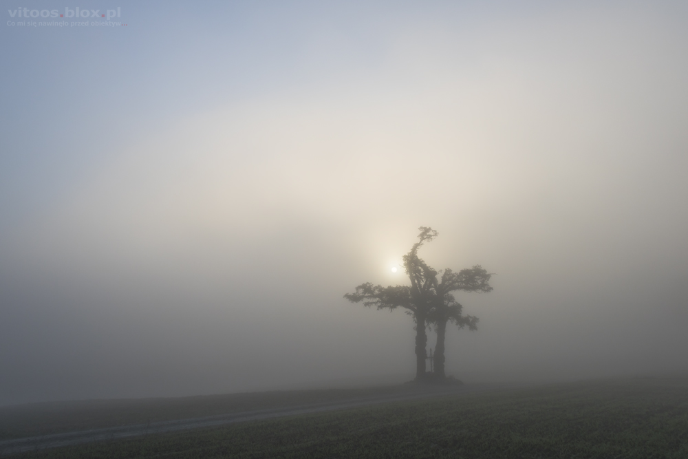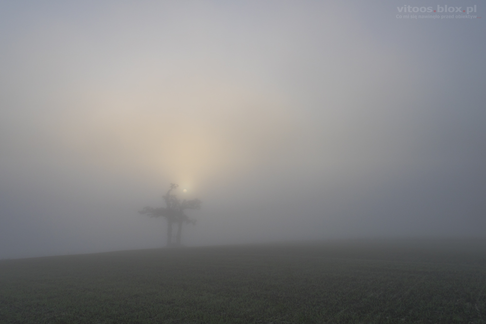 Po tym jak zrobiłem fotki, które pokazywałem wczoraj, udałem się do lasu w poszukiwaniu mgły. Udało mi się znaleźć niewielką polanę na której była tzw. szkółka leśna, gdzie było mgliście, a mgła w połączeniu ze słońce stworzyła taki spektakl: