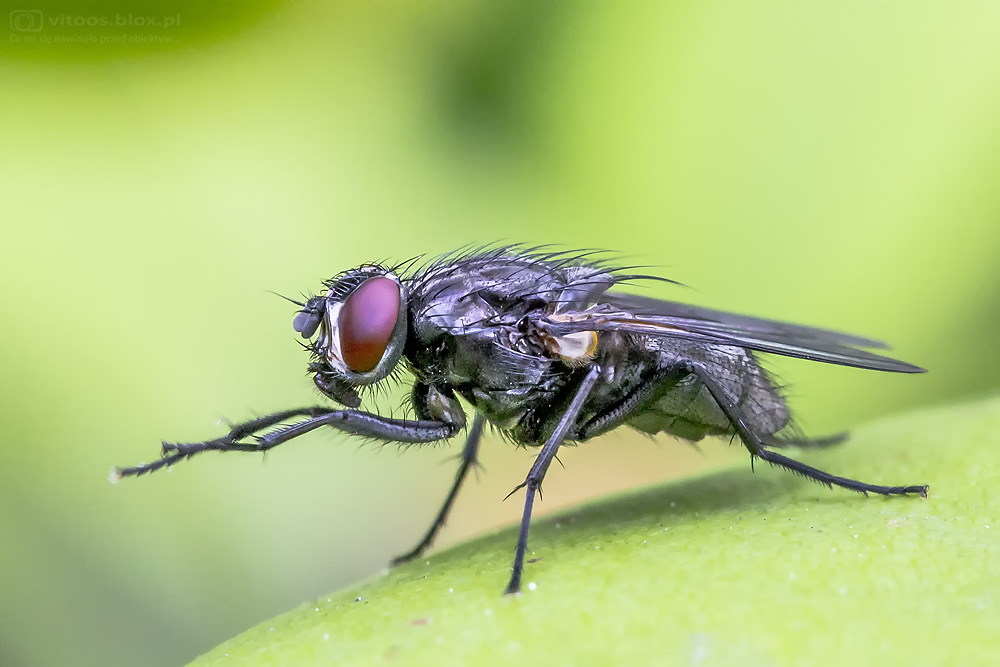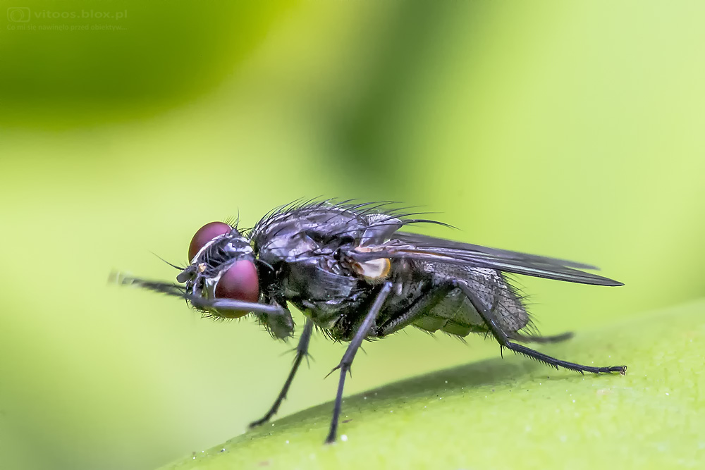 Zobaczyłem ją na liściu rododendrona. Pomyślałem, że zaraz ucieknie, ale kiedy zabrała się za toaletę, wiedziałem, że nic nie będzie sobie robiła z mojej obecności. Muchy podczas toalety zatracają poczucie rzeczywistości, stwierdzam. Świat dookoła przestaje wtedy dla nich istnieć.