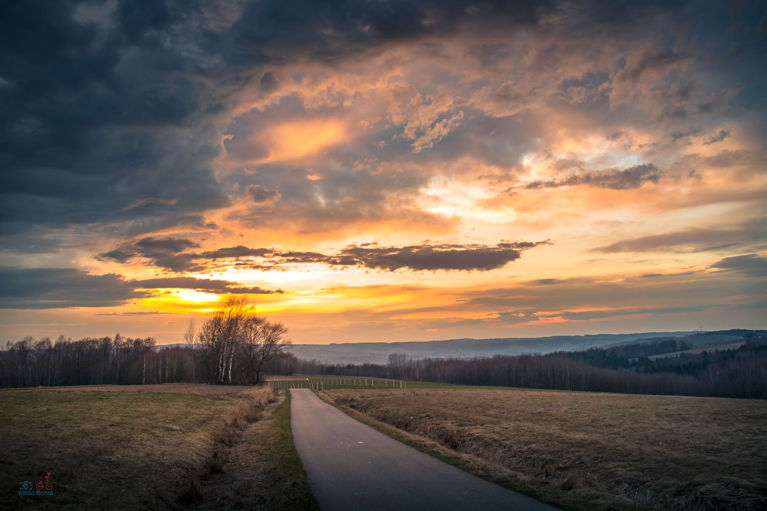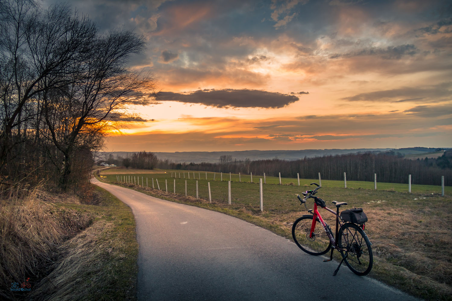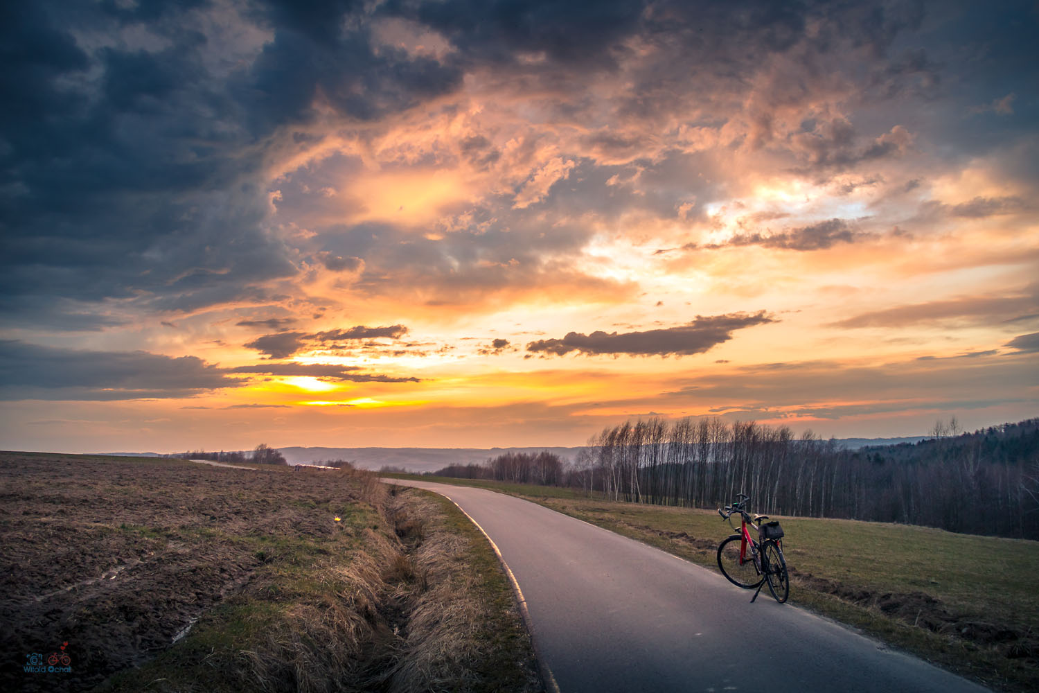 Środa, pierwszy (a może drugi) dzień wiosny, była kolejnym dniem z dwucyfrową temperaturą. Dopiero samym wieczorem miałem możliwość wsiąść na rower. Spieszyłem się, bo zaraz miał być zachód słońca. Chciałem dojechać na jakieś bezludzie, aby tam nacieszyć się tym widokiem.