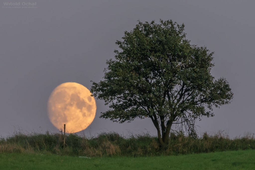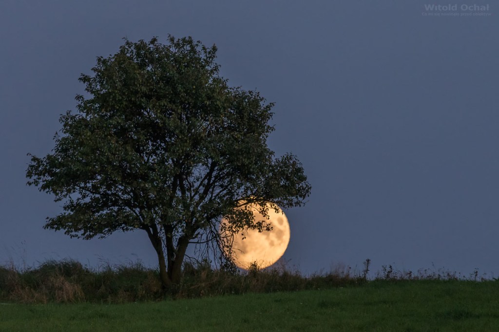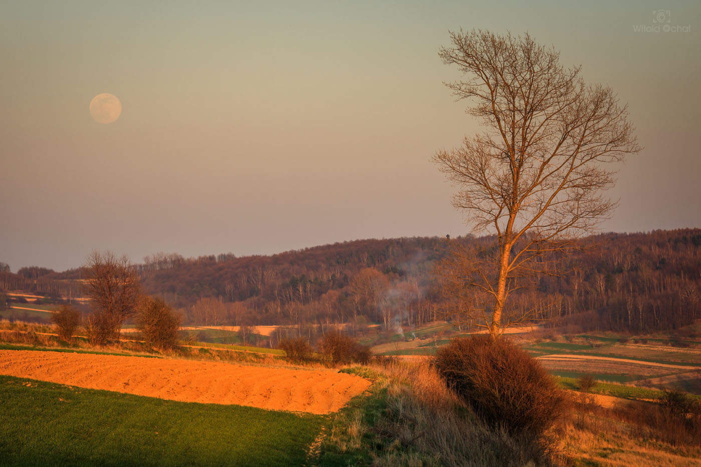 FOT. WITOLD OCHAŁ POWIAT ROPCZYCKO-SĘDZISZOWSKI FOTOGRAFIA KRAJOBRAZOWA PODKARPACIE GNOJNICA GÓRA ROPCZYCKA WSCHÓD RÓŻOWEGO KSIĘŻYCA W PEŁNI