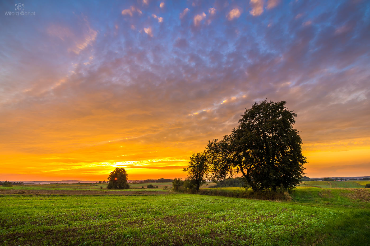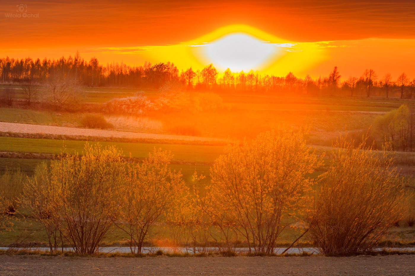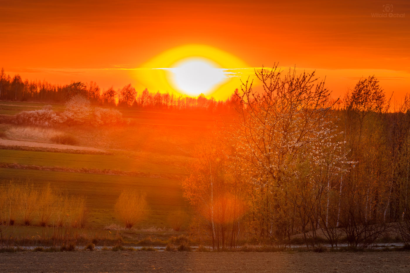 Nie powiem, że najlepsze, ale z pewnością jedne z lepszych warunków jakie trafiłem w tym roku. W ostatni dzień maja, po deszczowym weekendzie późnym po południem wziąłem aparat i poszedłem sobie po prostu pospacerować. Coś mi podpowiadało, że zachód może być naprawdę spektakularny. Kiedy całe niebo przykryła ciemna chmura, nad zachodnim horyzontem wciąż była wstążka czystego nieba. Wystarczyło tylko zając pozycję i czekać, aż słońce zejdzie nisko i przyświeci na okolicę.