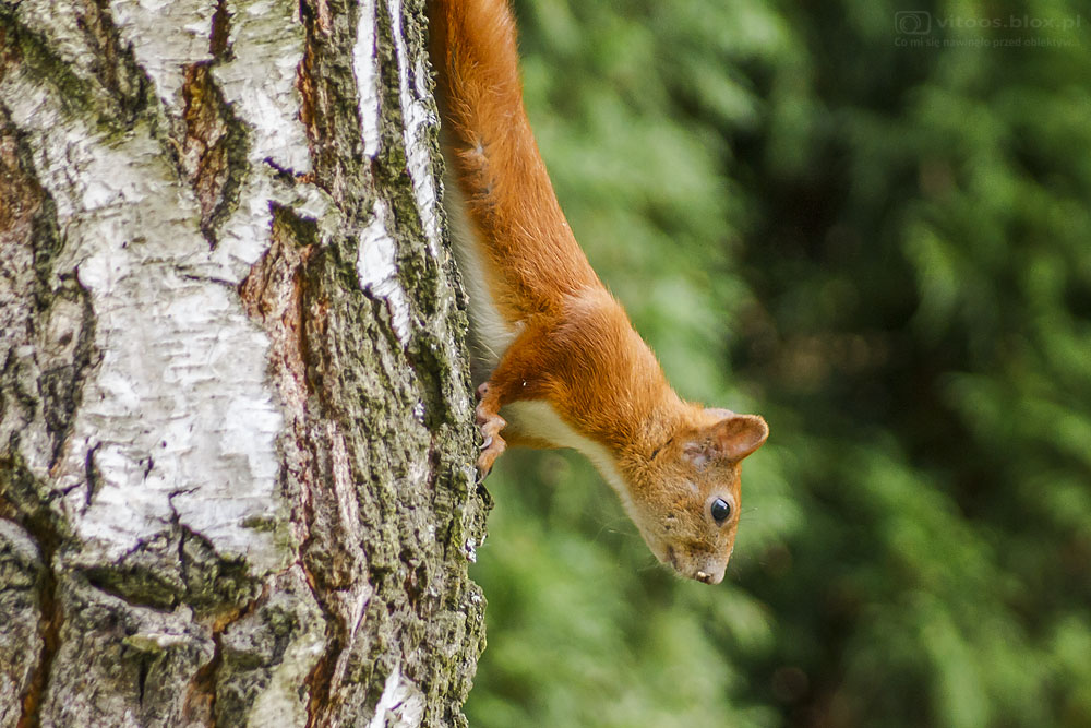 Znalazła jeszcze jakieś resztki jabłek leżących pod jabłonką. Wiewiórka, być może nie ciągle ta sama) zagląda do ogrodu całkiem często i pozwala podchodzić do siebie coraz bliżej. Chyba powinienem jej już nadać jakoweś imię 😉